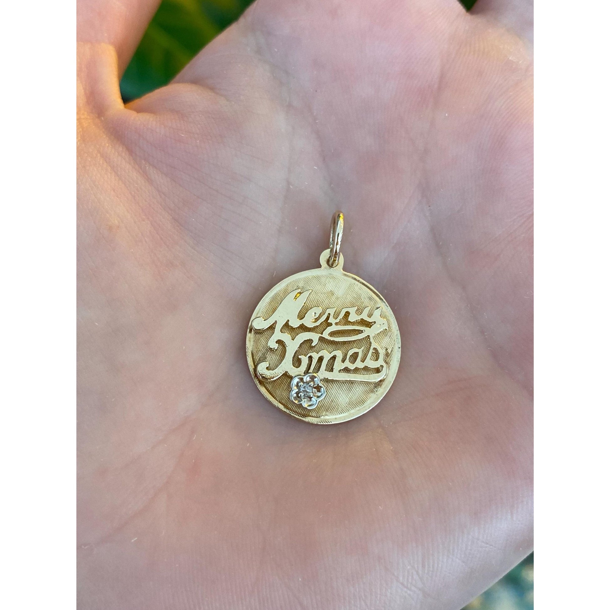 Vintage Solid 14k Yellow Gold Clear Spinel Merry Christmas Charm