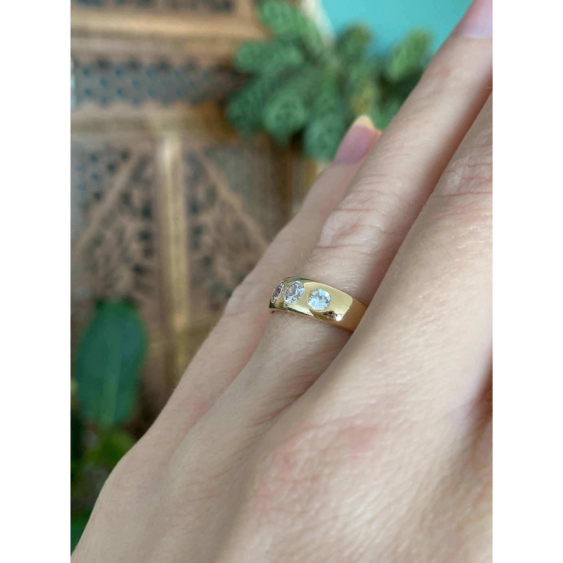Vintage Solid 14k Yellow Gold Clear Spinel Ring Band - Size 5.5