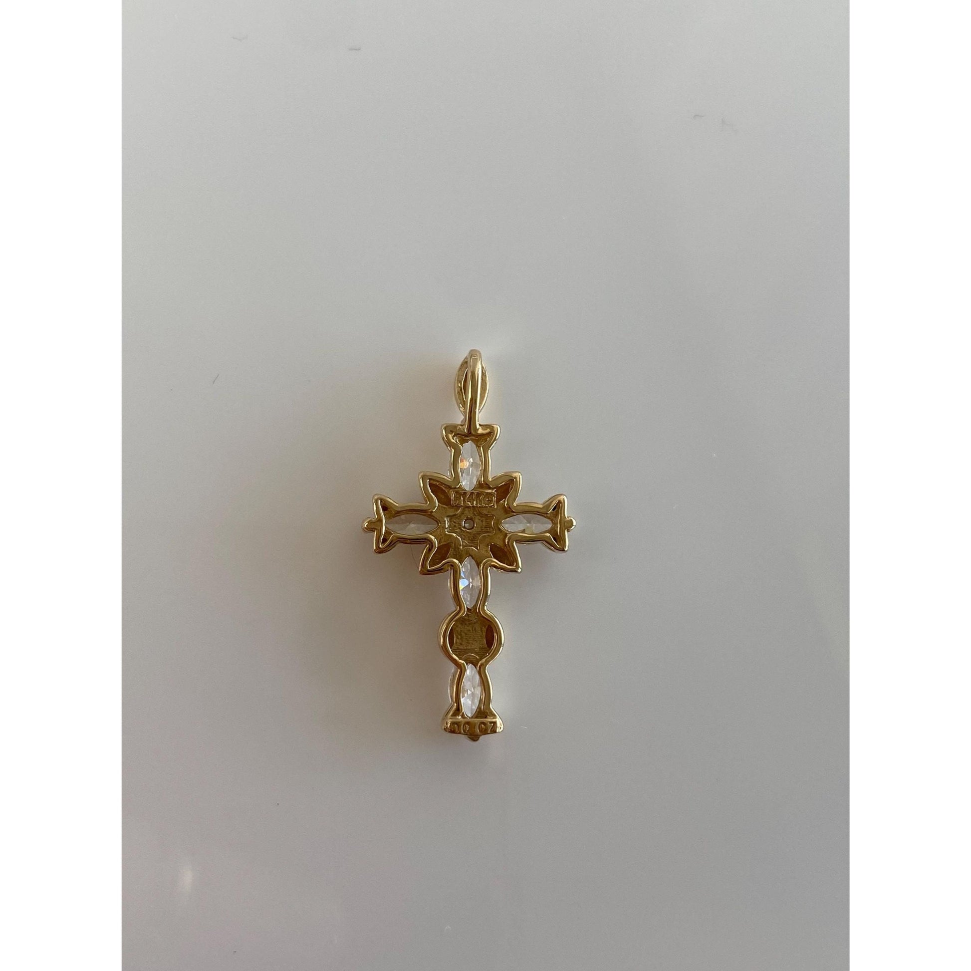 Vintage Solid 14k Yellow Gold Cubic Zirconia Cross Charm
