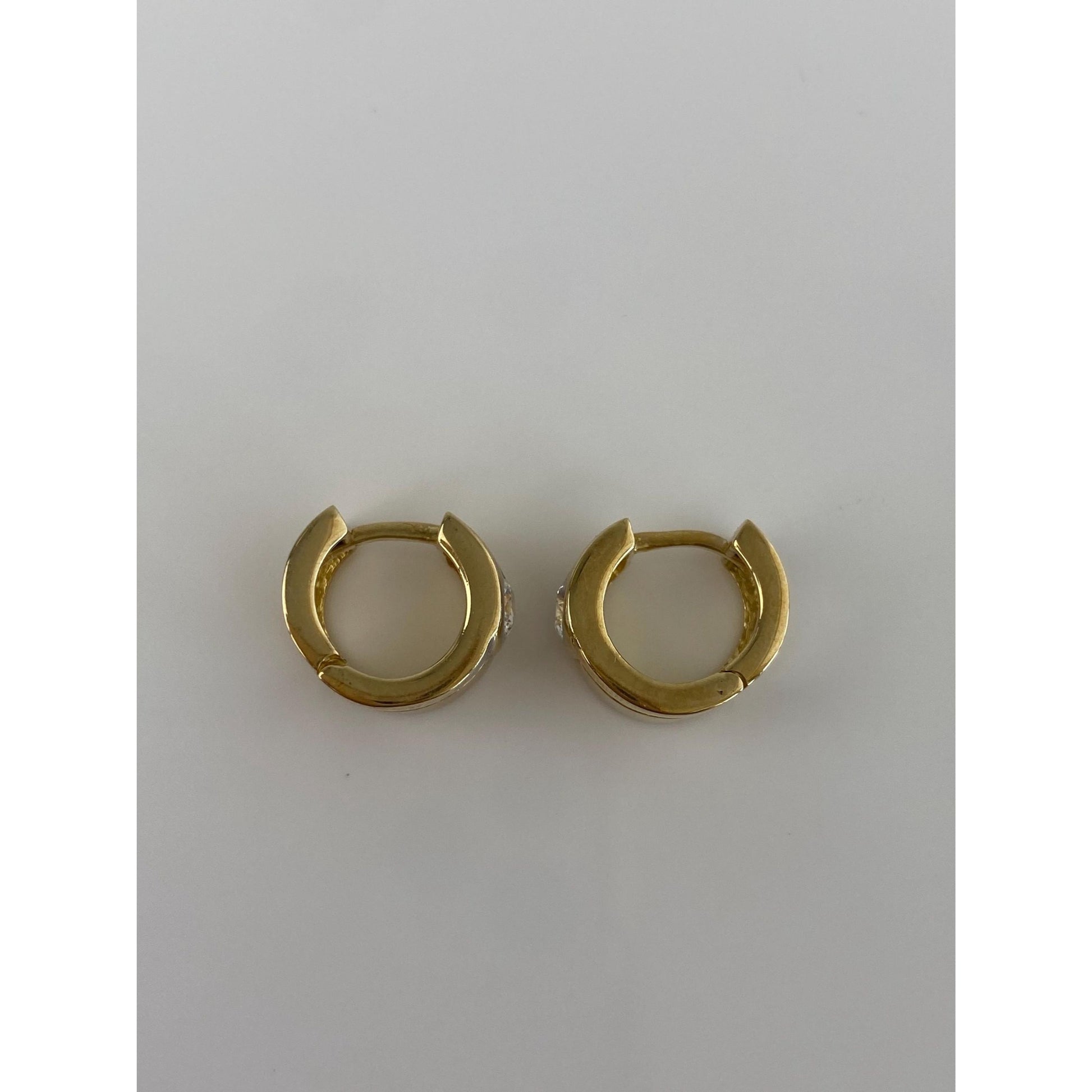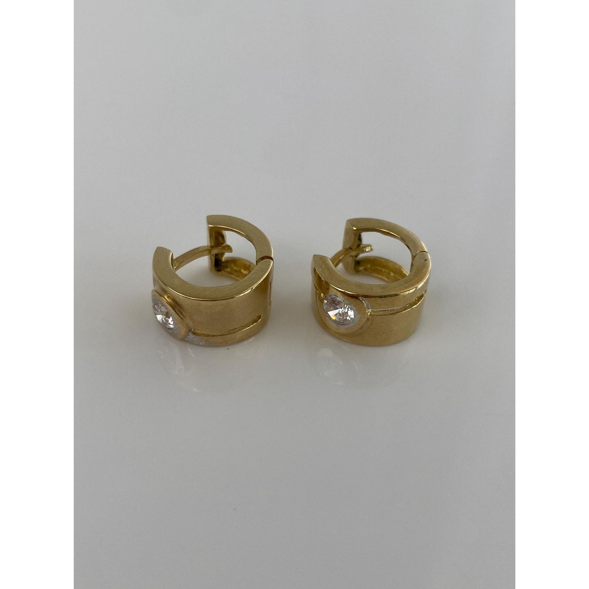 Vintage Solid 14k Yellow Gold Cubic Zirconia Hoop Earrings
