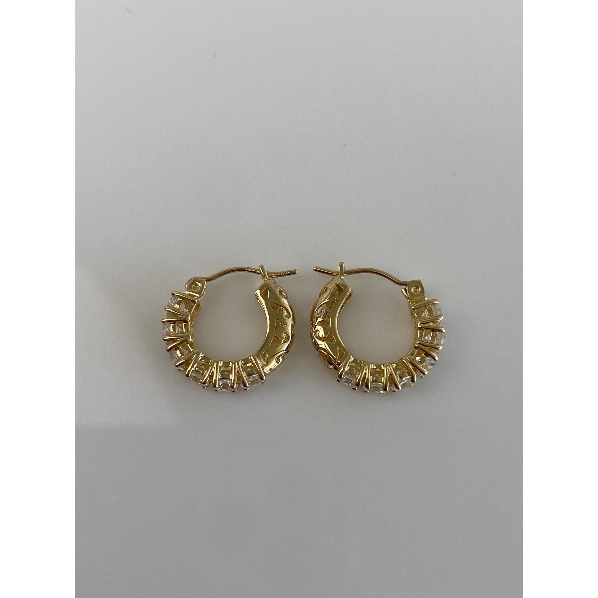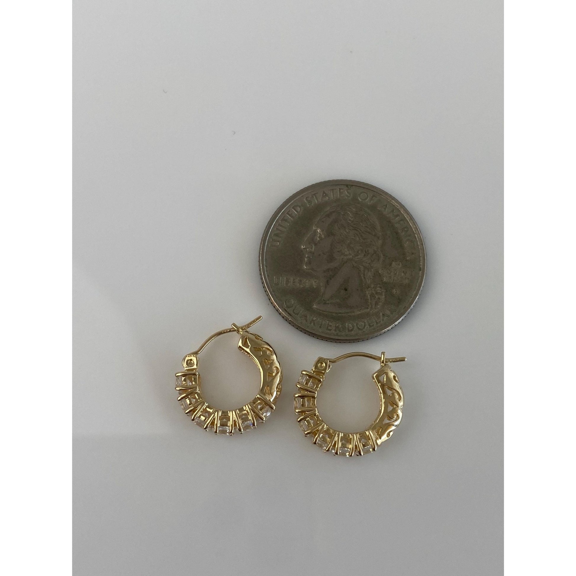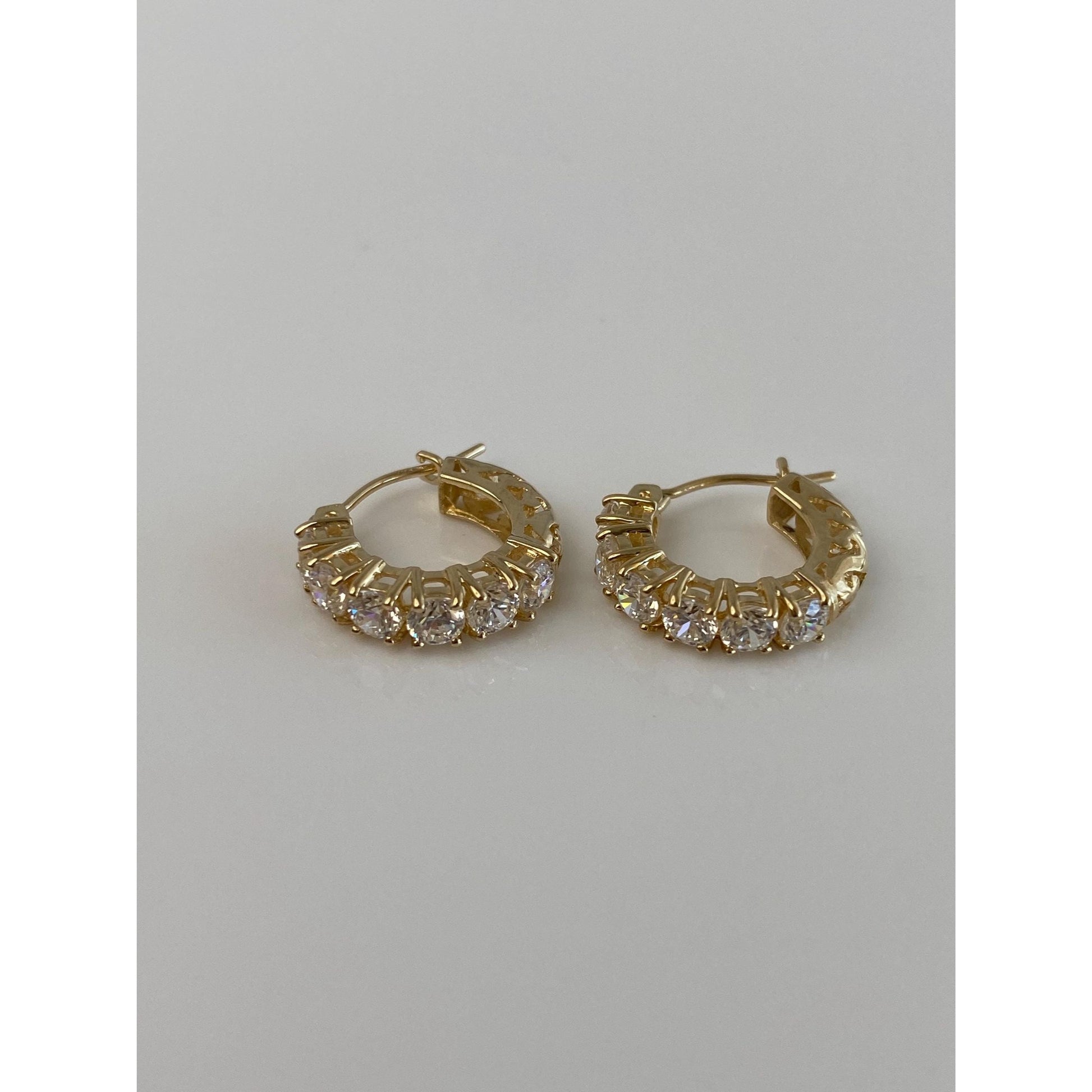 Vintage Solid 14k Yellow Gold Cubic Zirconia Huggie Hoop Earrings