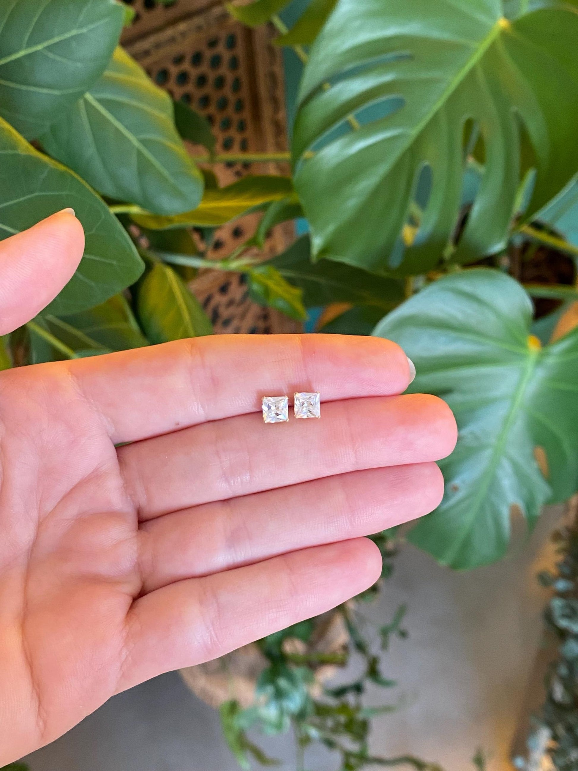 Vintage Solid 14k Yellow Gold Cubic Zirconia Square Stud Earrings