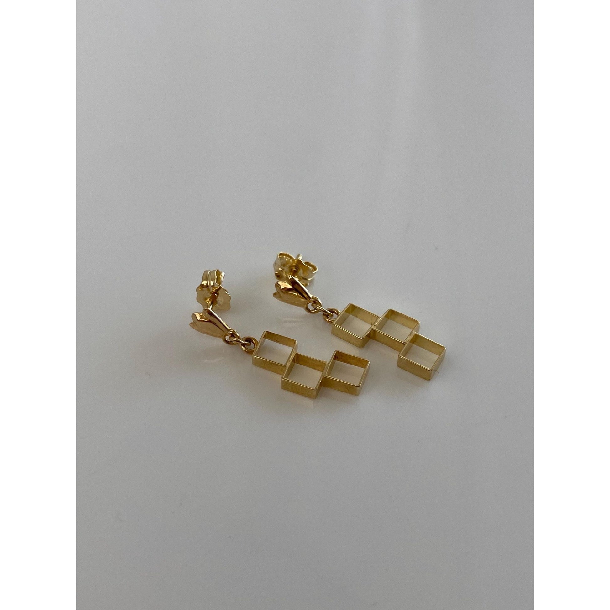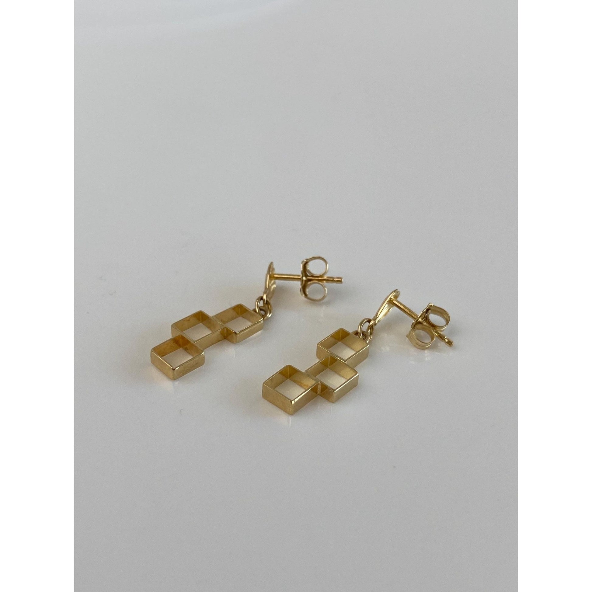 Vintage Solid 14k Yellow Gold Cubist Dangle Stud Earrings