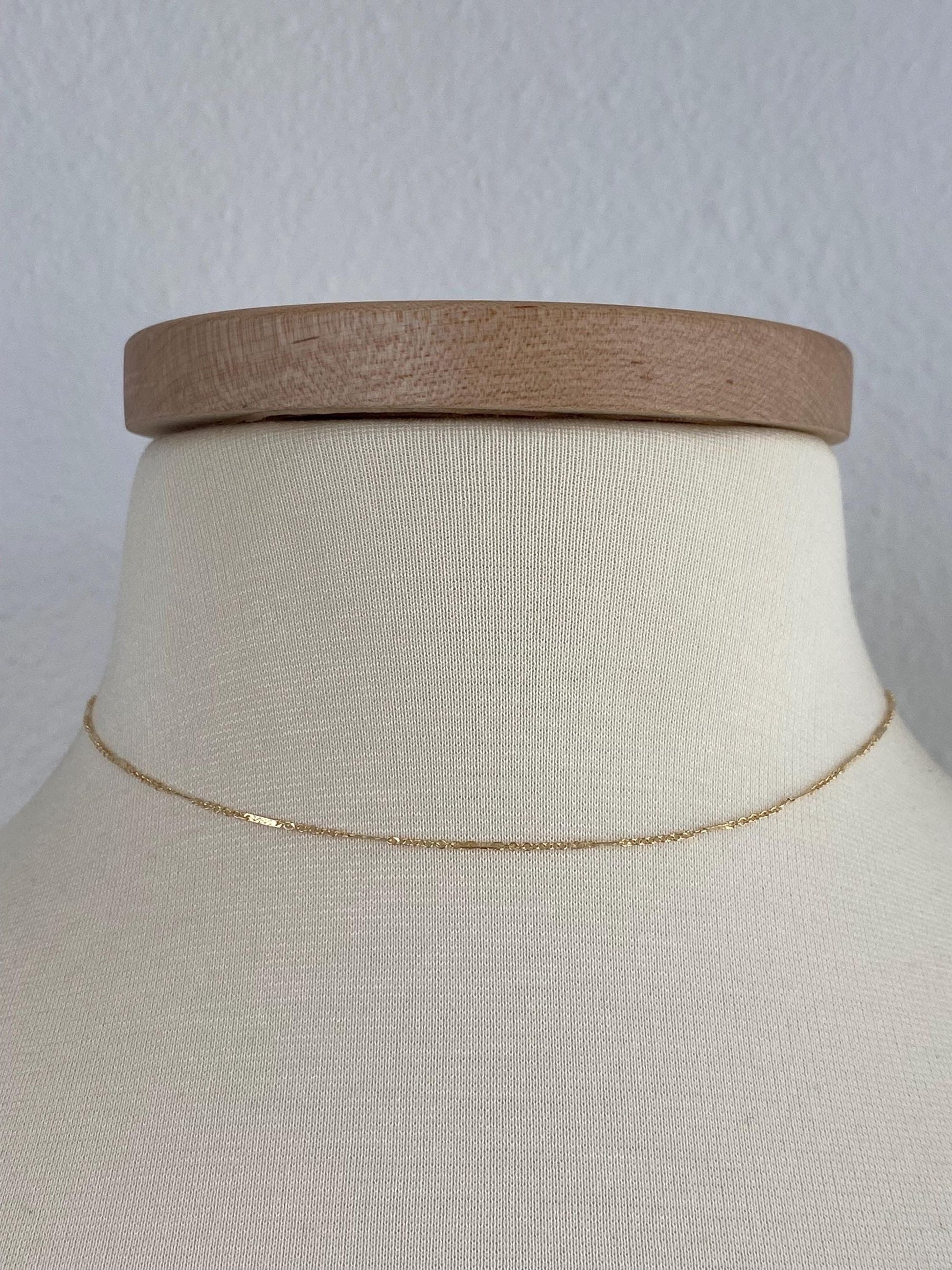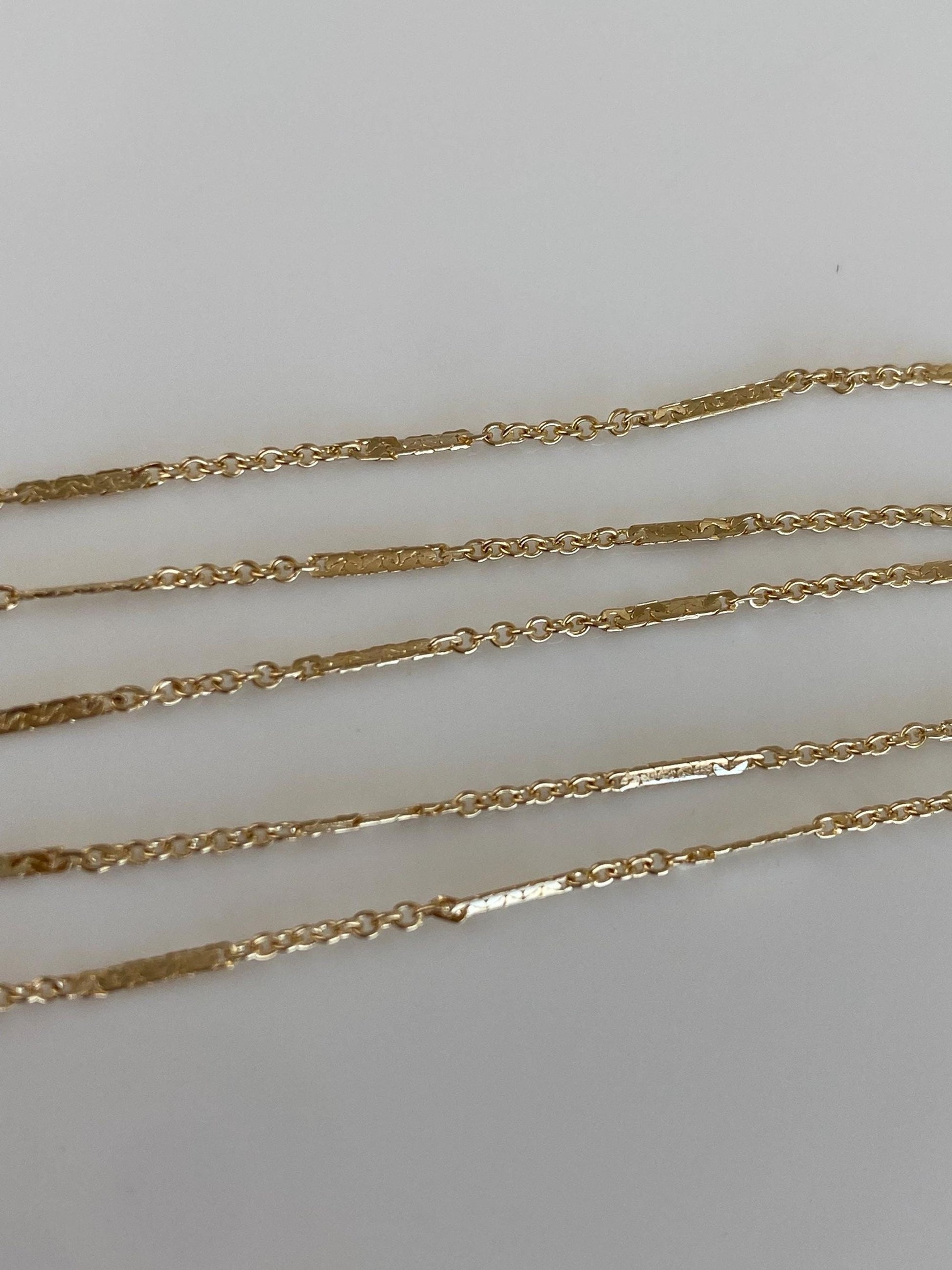 Vintage Solid 14k Yellow Gold Dainty Bar Link Chain Necklace - 15 inches