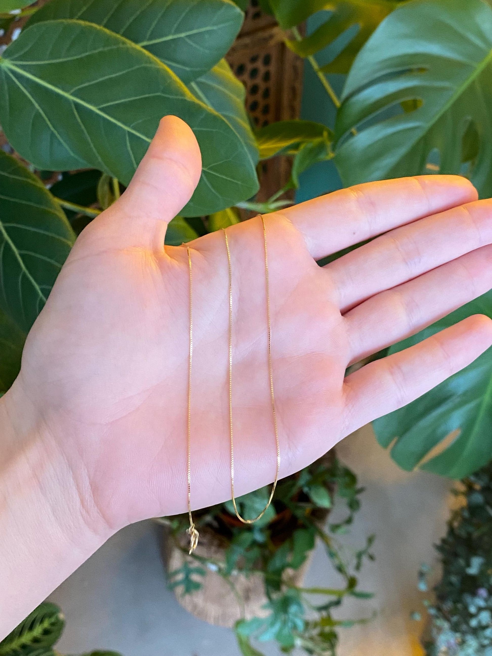 Vintage Solid 14k Yellow Gold Dainty Box Chain Necklace - 18 inches