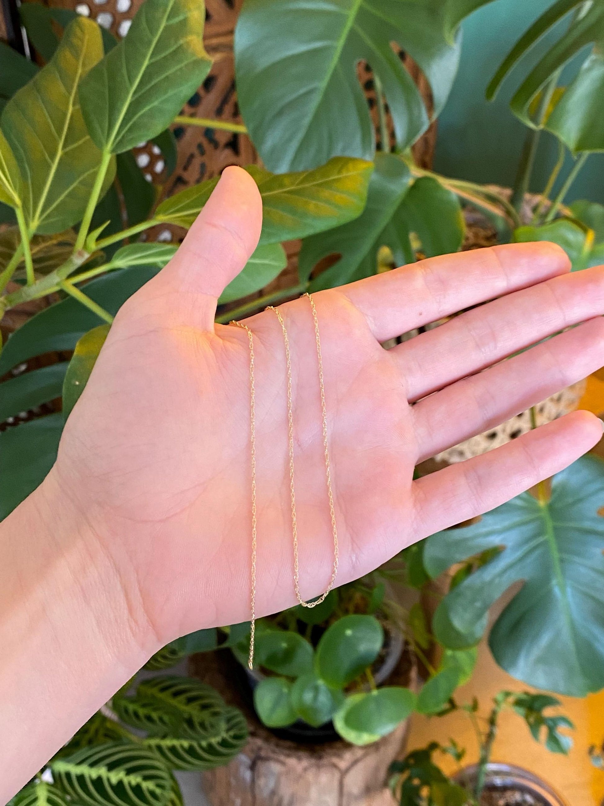 Vintage Solid 14k Yellow Gold Dainty Chain Necklace - 18 inches