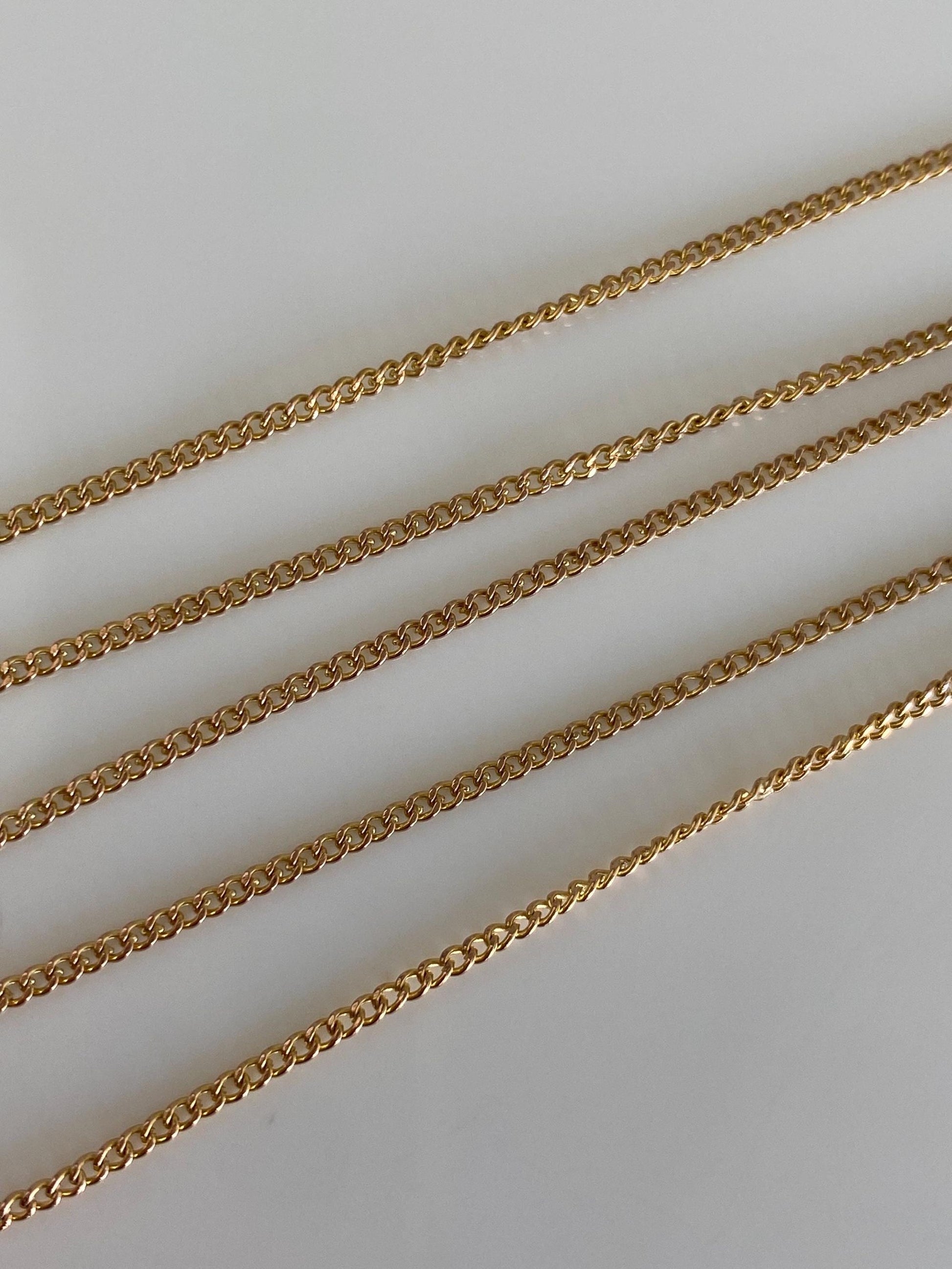 Vintage Solid 14k Yellow Gold Dainty Curb Chain Necklace - 17.25 inches