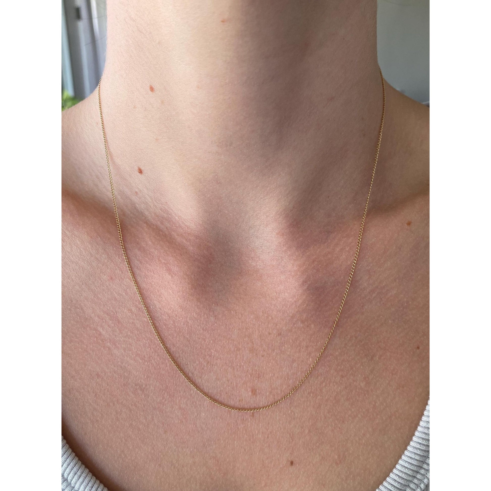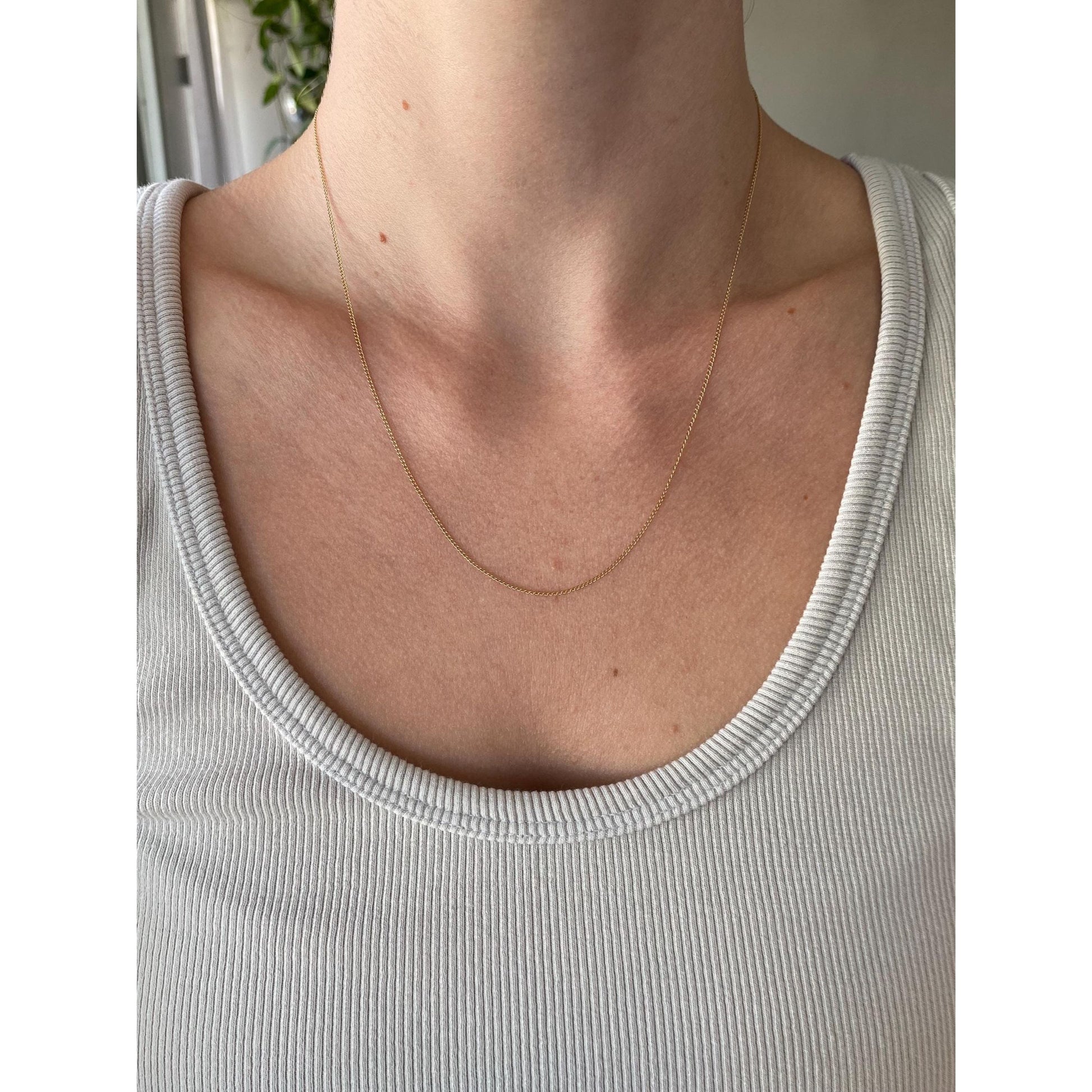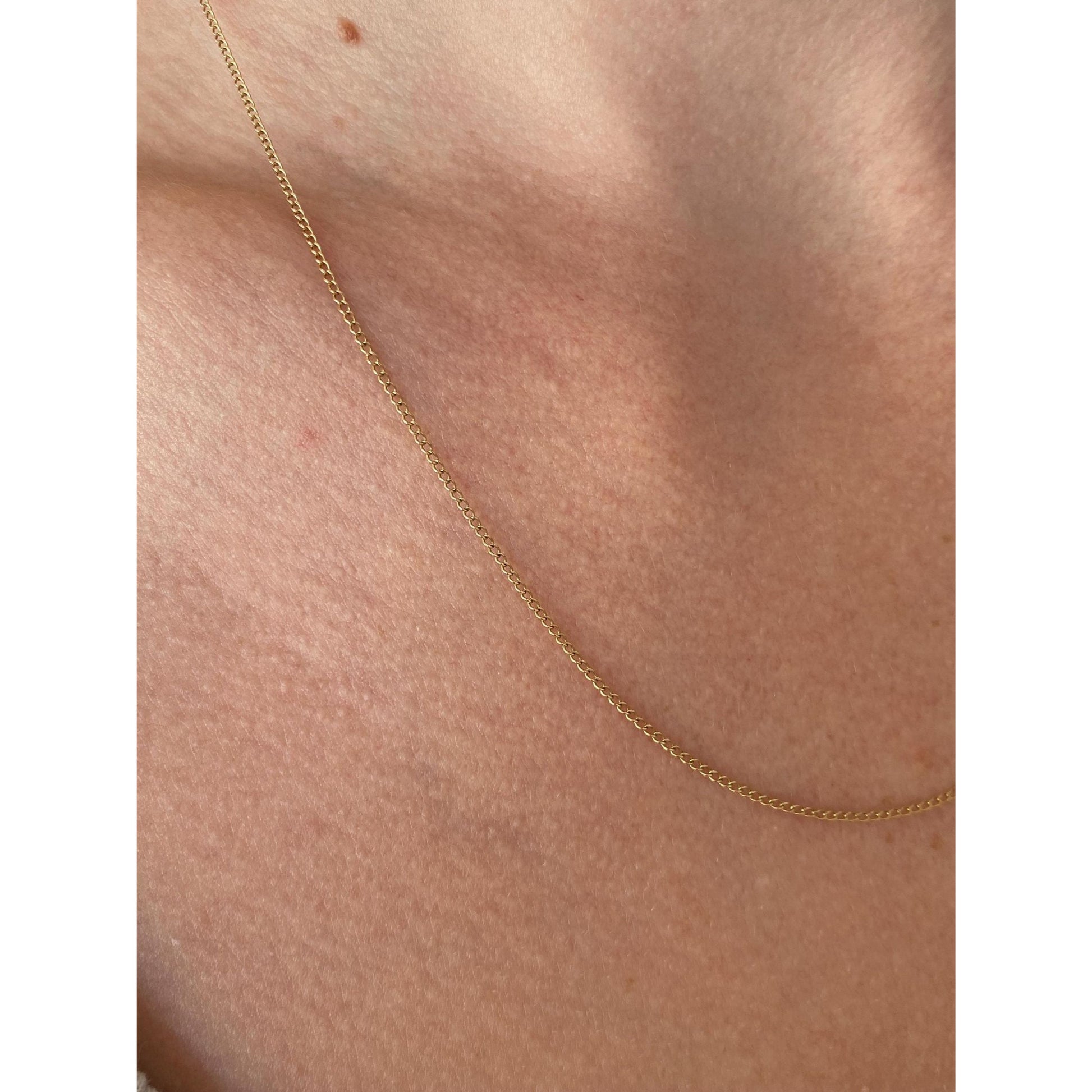 Vintage Solid 14k Yellow Gold Dainty Elongated Curb Chain Necklace - 18.75 inches