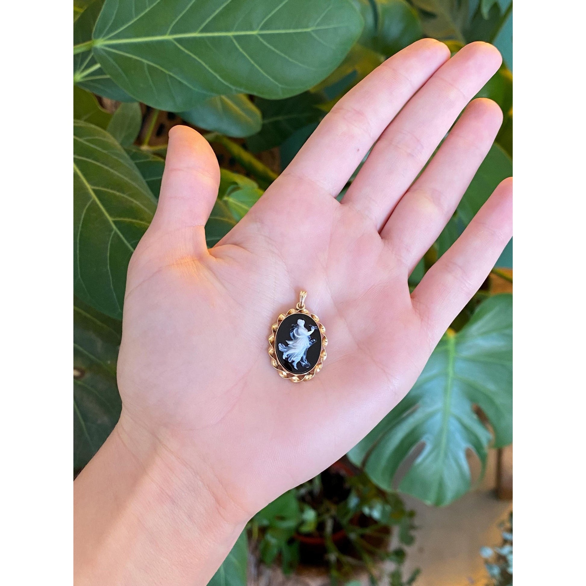 Vintage Solid 14k Yellow Gold Dancing Lady Cameo Charm
