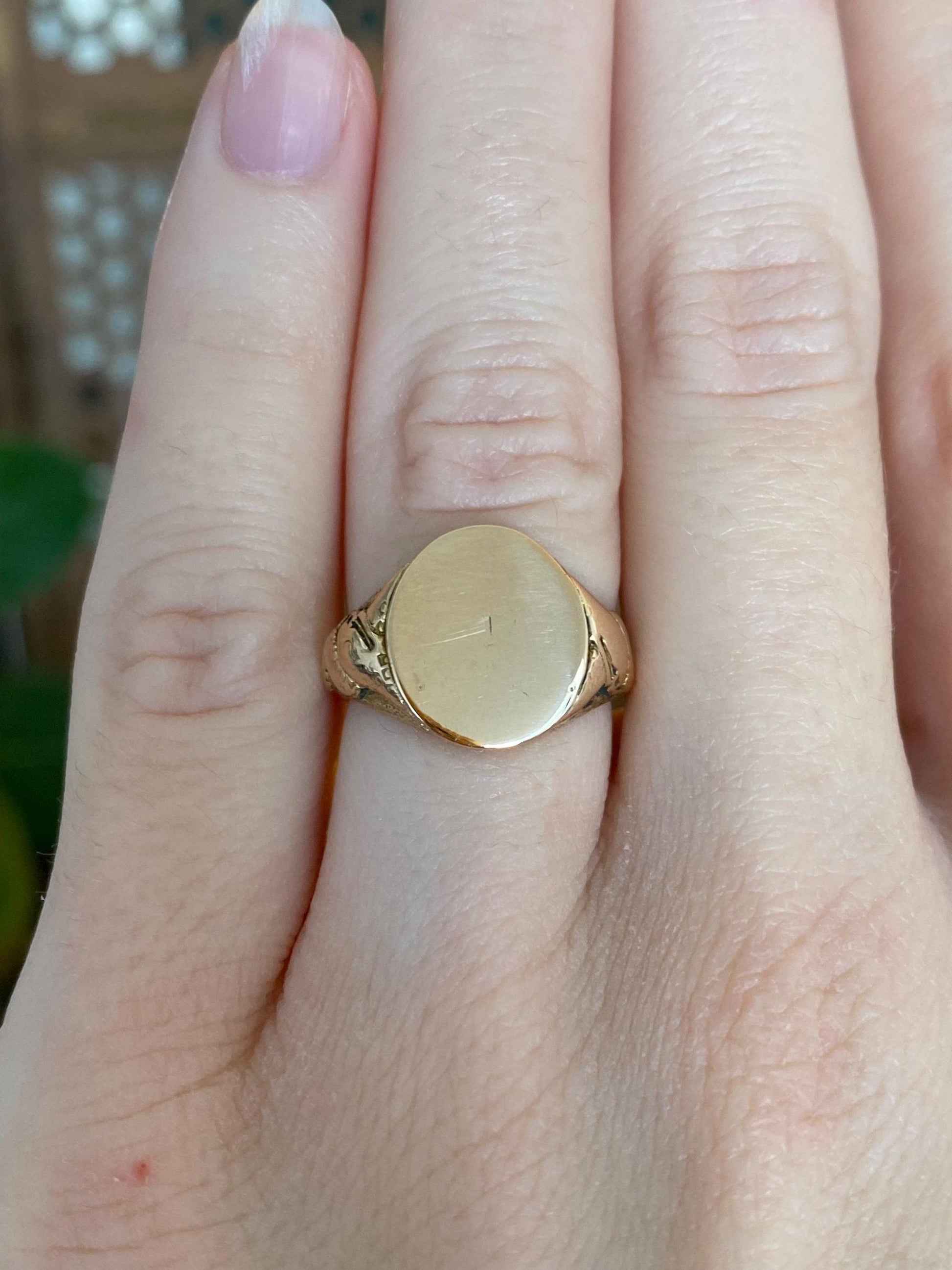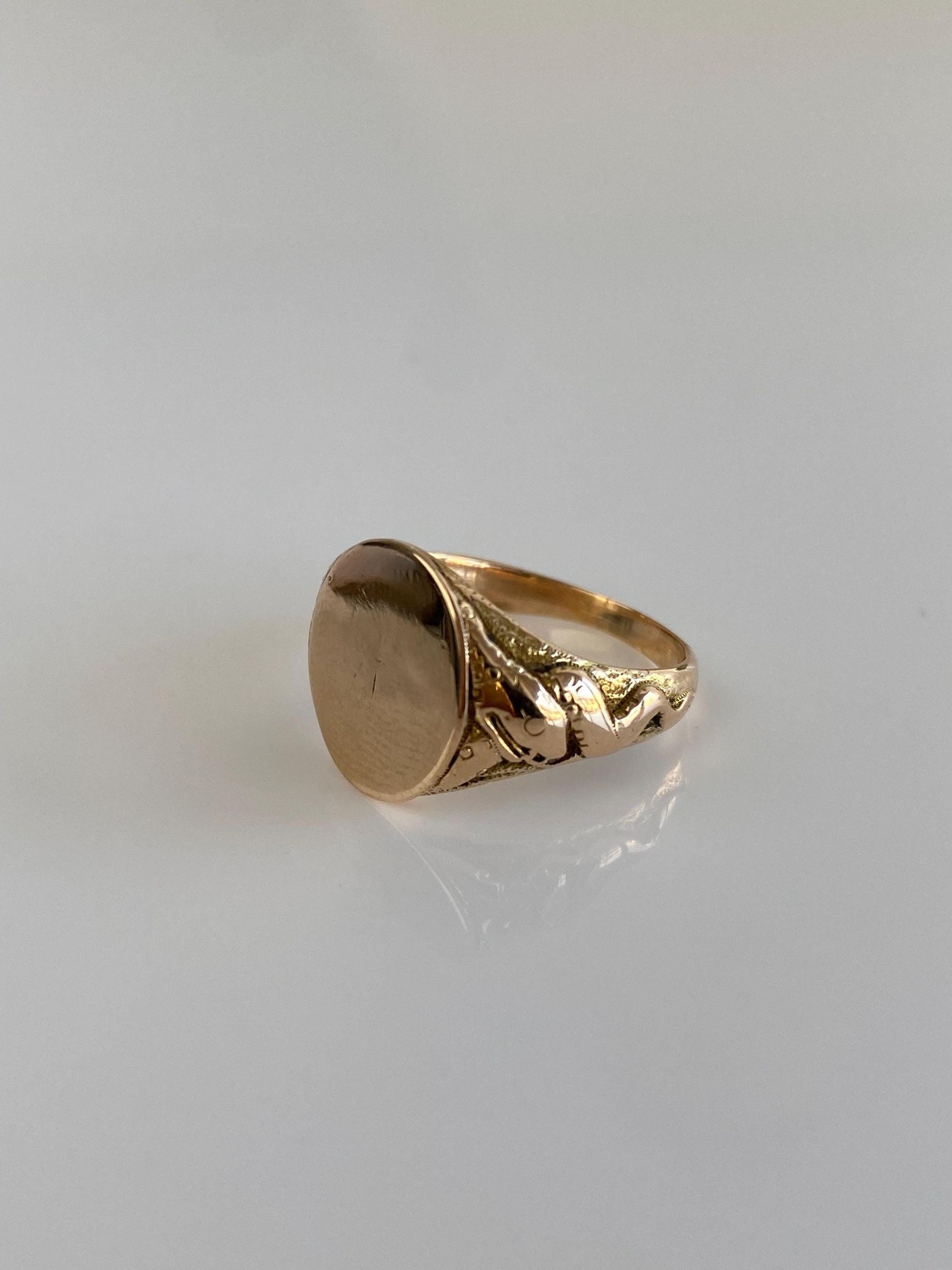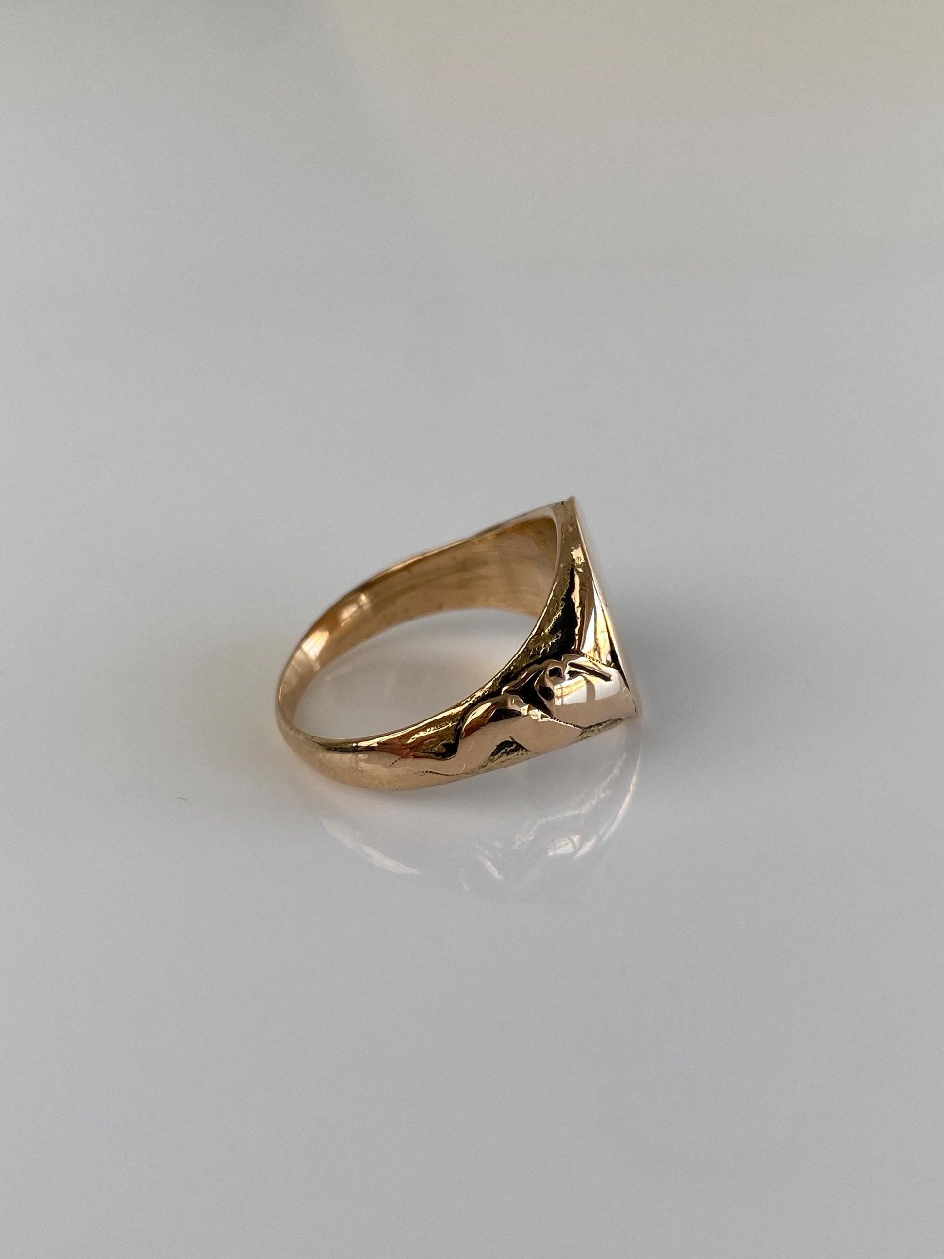 Vintage Solid 14k Yellow Gold Design Signet Ring - Size 5