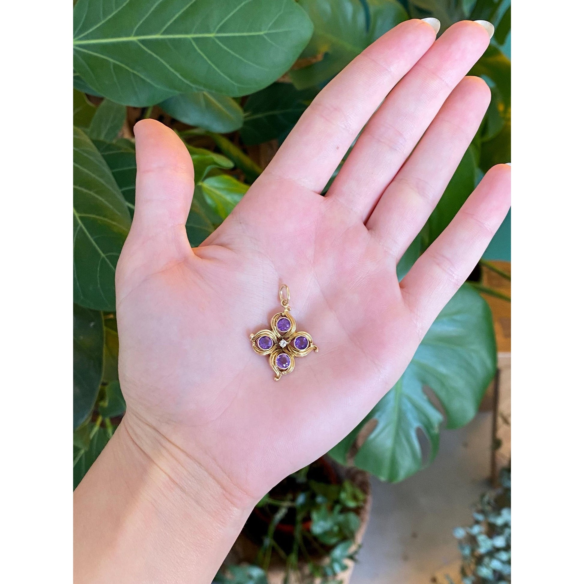 Vintage Solid 14k Yellow Gold Diamond Amethyst Charm