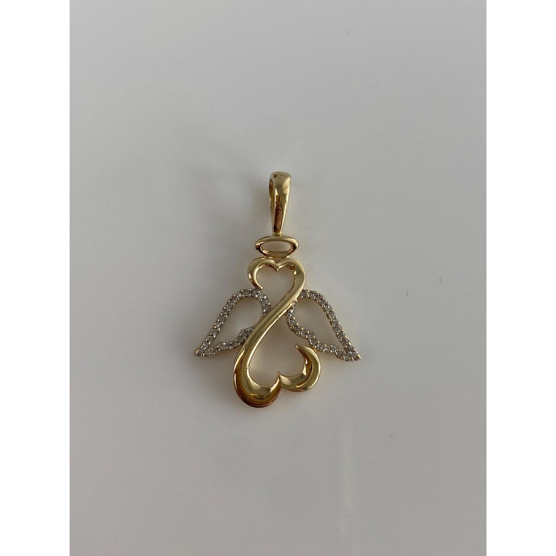Vintage Solid 14k Yellow Gold Diamond Angel Charm
