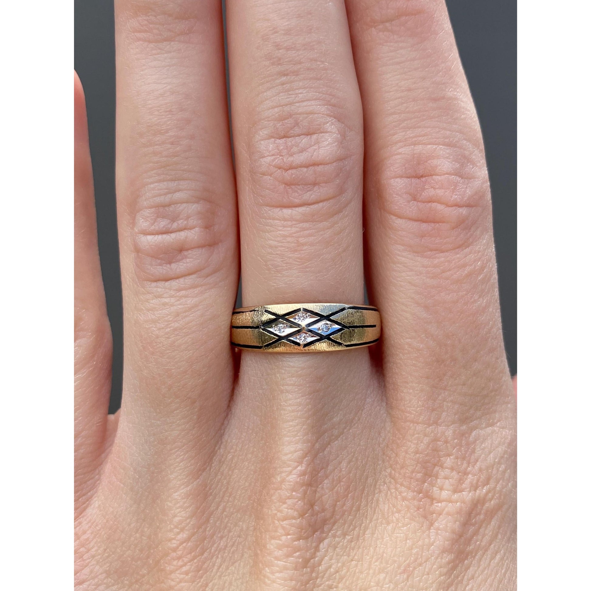 Vintage Solid 14k Yellow Gold Diamond Black Enamel Ring Band - Size 8