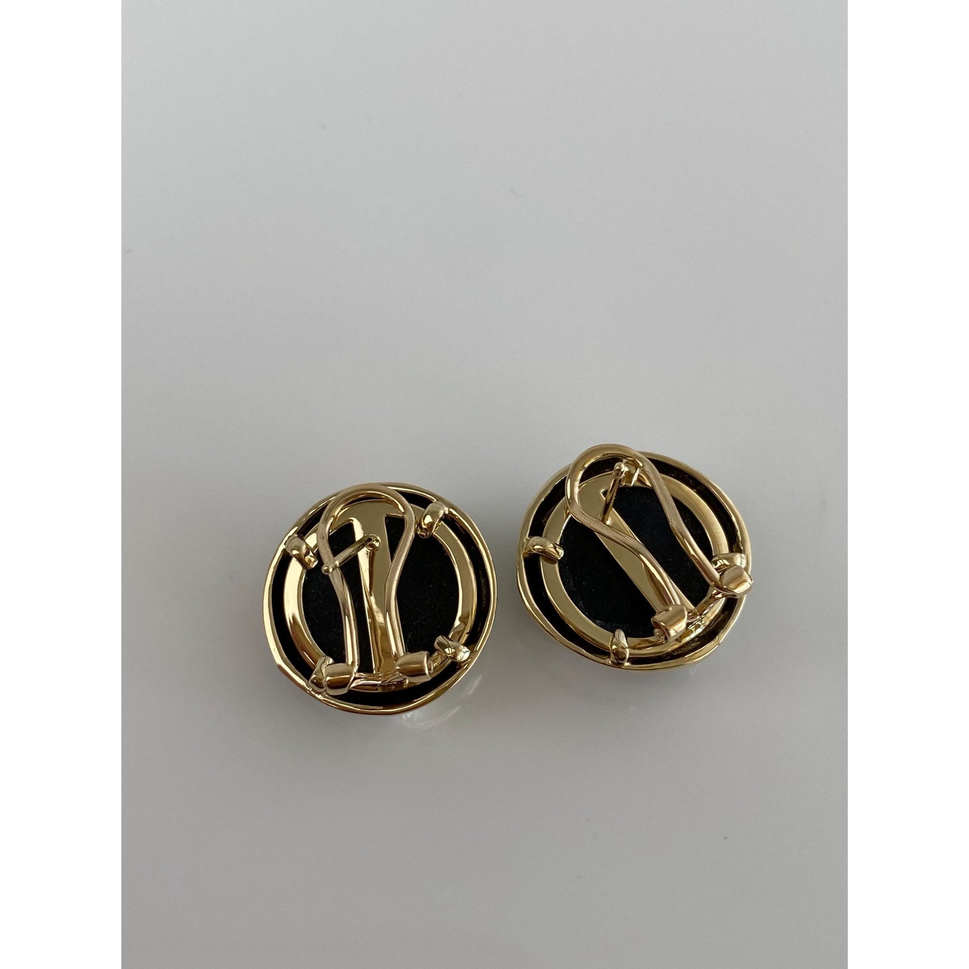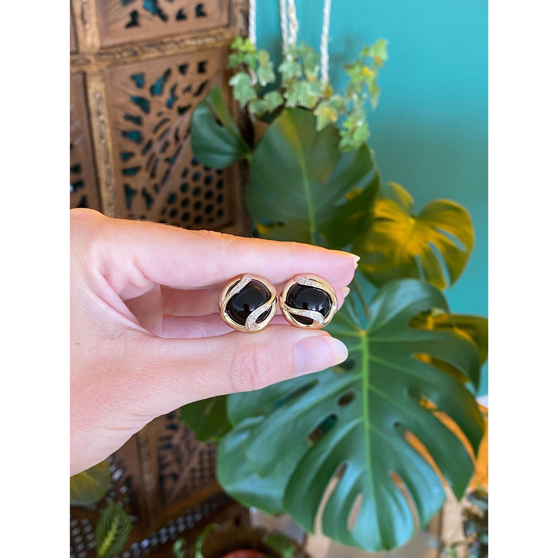 Vintage Solid 14k Yellow Gold Diamond Black Onyx Stud Earrings