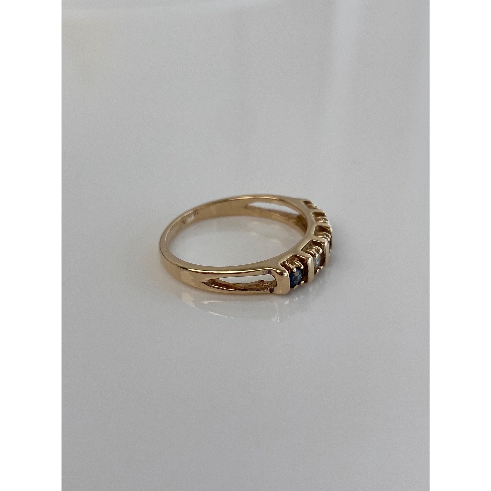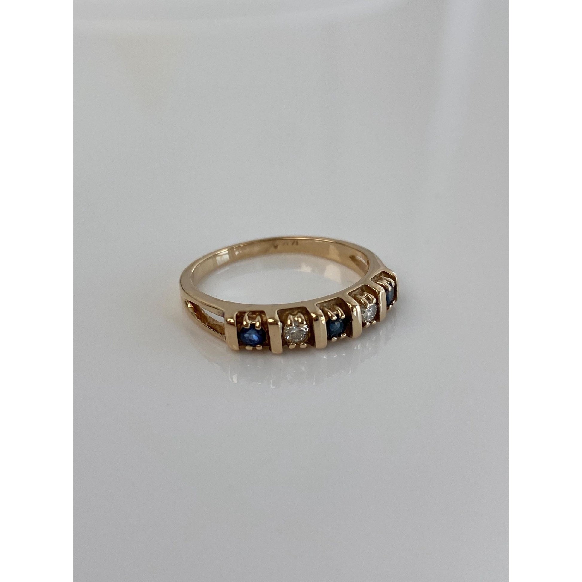 Vintage Solid 14k Yellow Gold Diamond Blue Sapphire Ring Band - Size 7.25