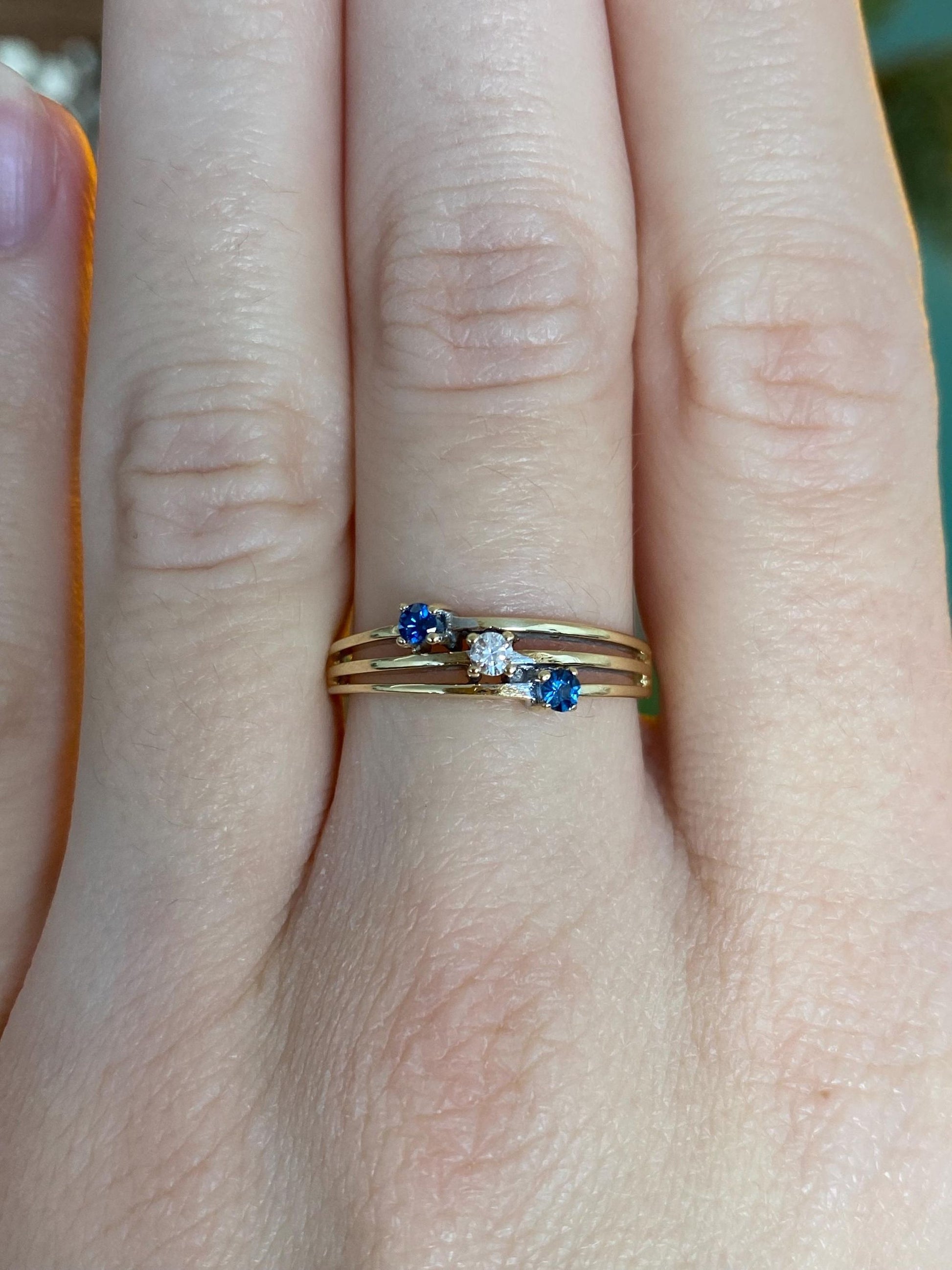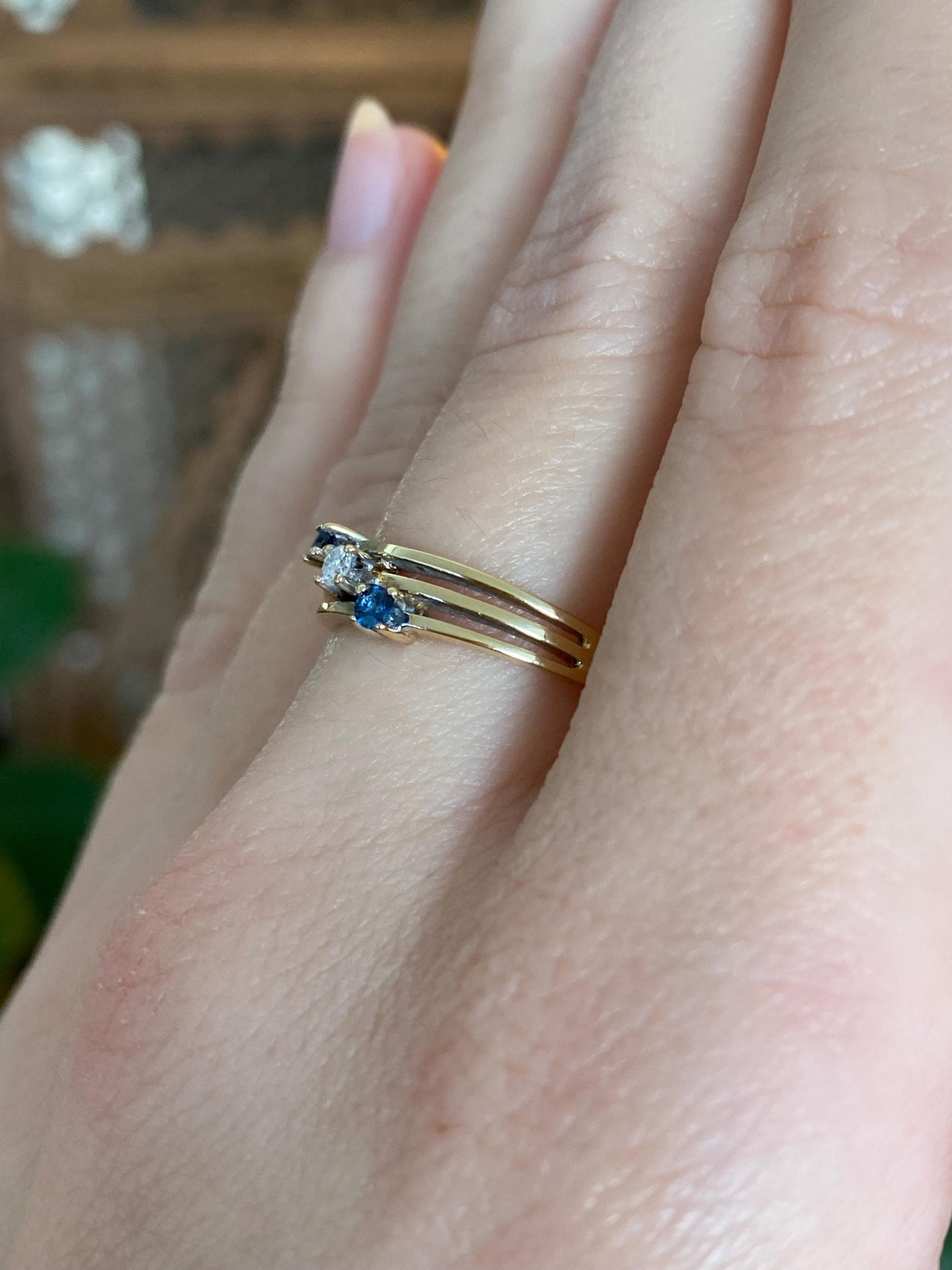 Vintage Solid 14k Yellow Gold Diamond Blue Sapphire Ring - Size 7.25