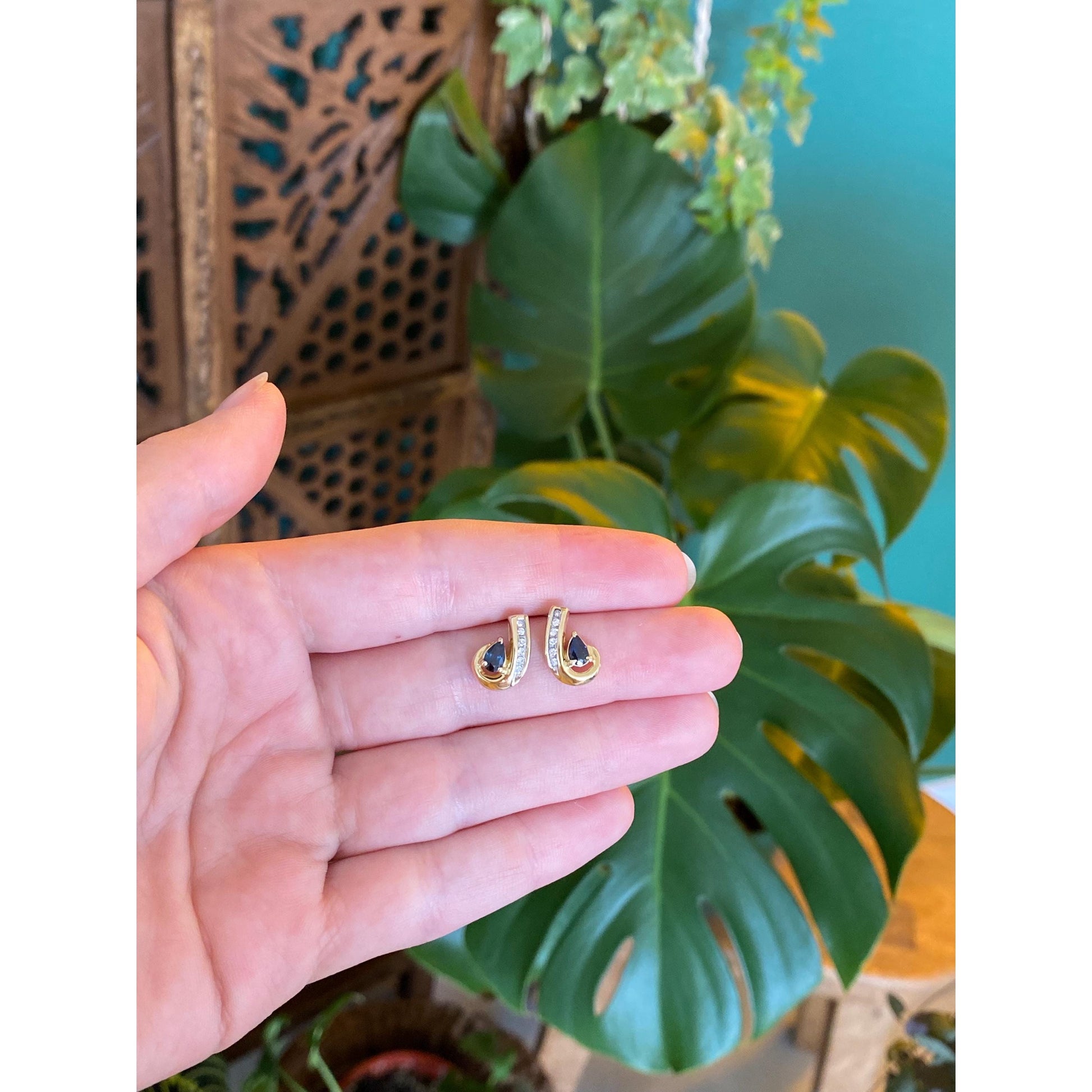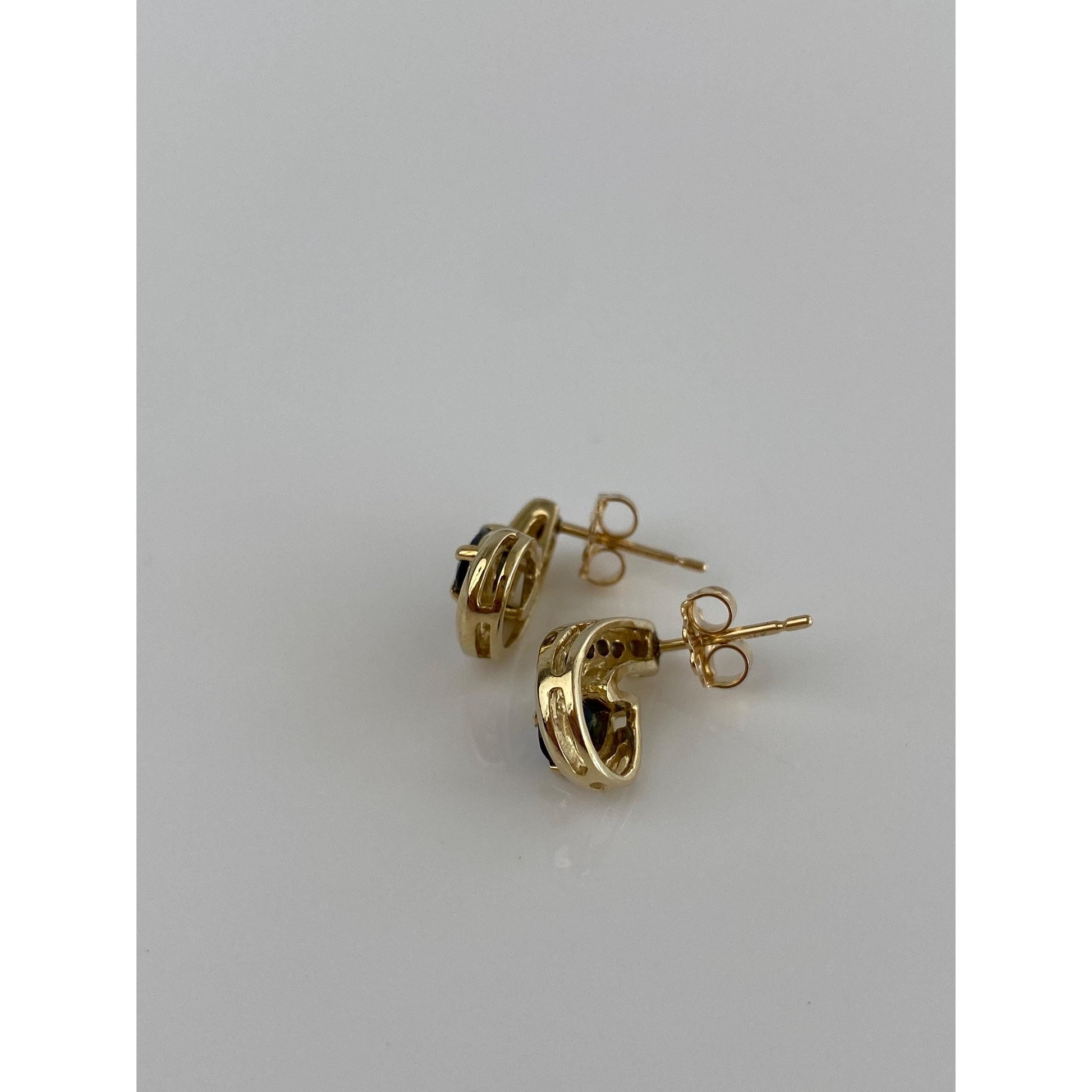 Vintage Solid 14k Yellow Gold Diamond Blue Sapphire Stud Earrings