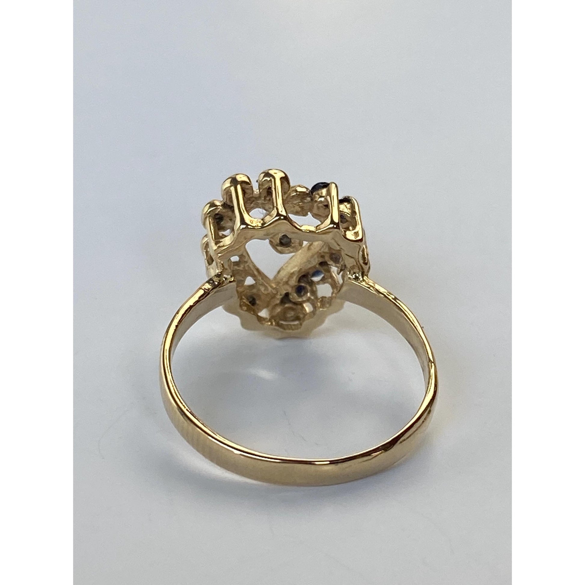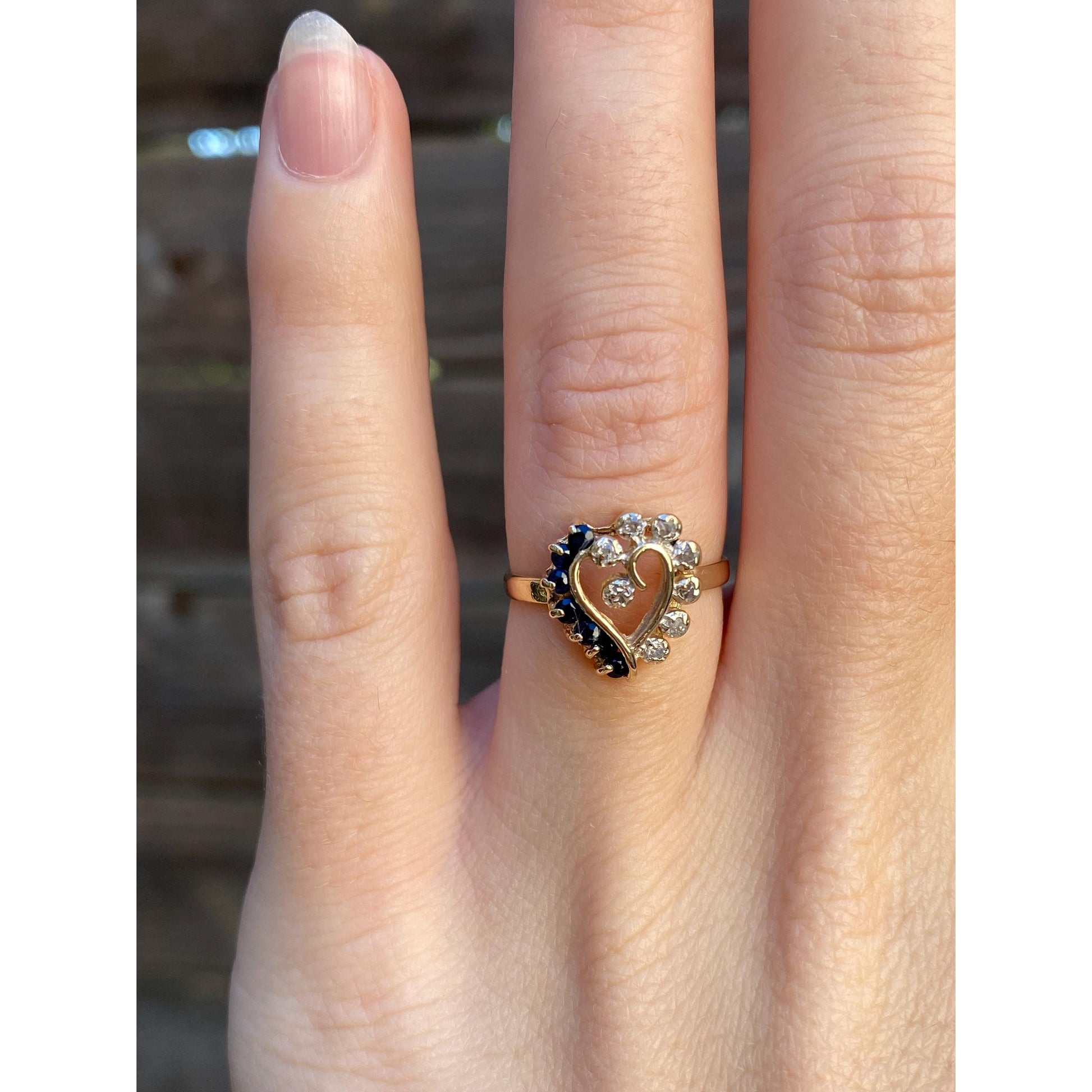 Vintage Solid 14k Yellow Gold Diamond Blue Spinel Heart Ring - Size 5.5
