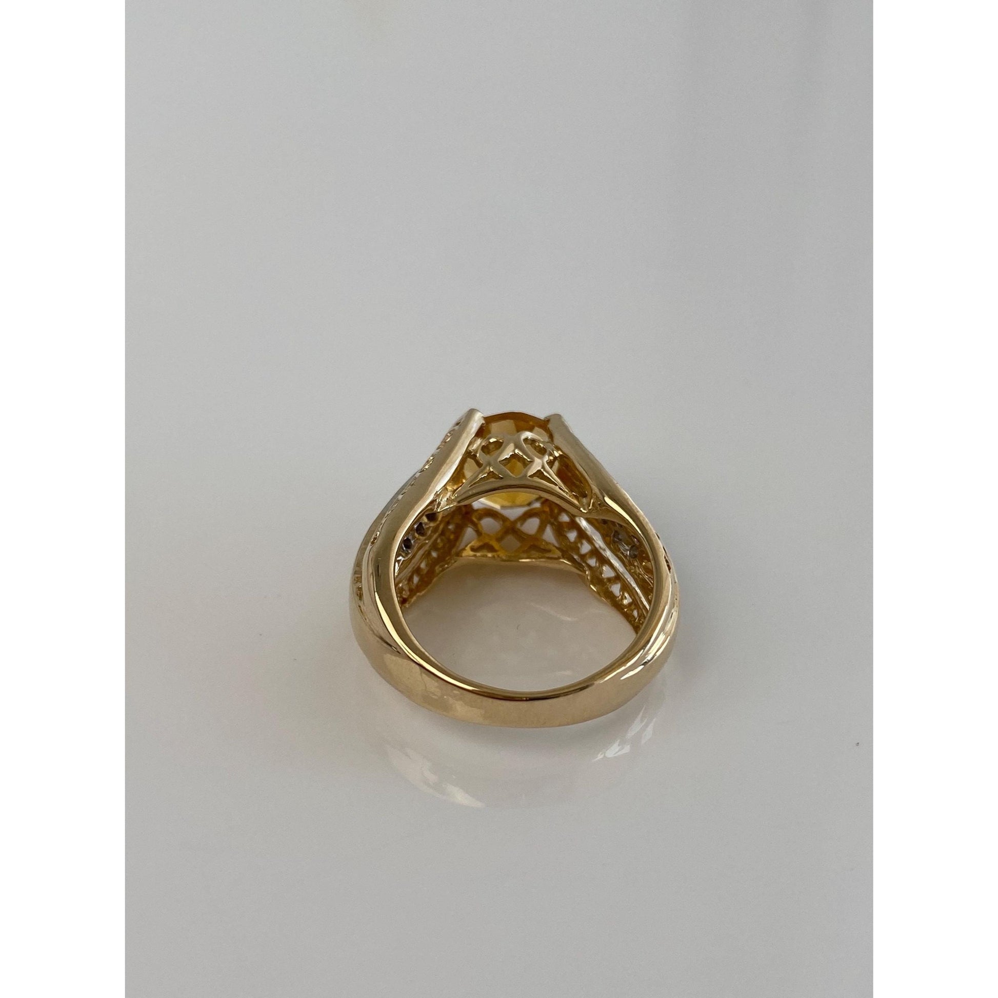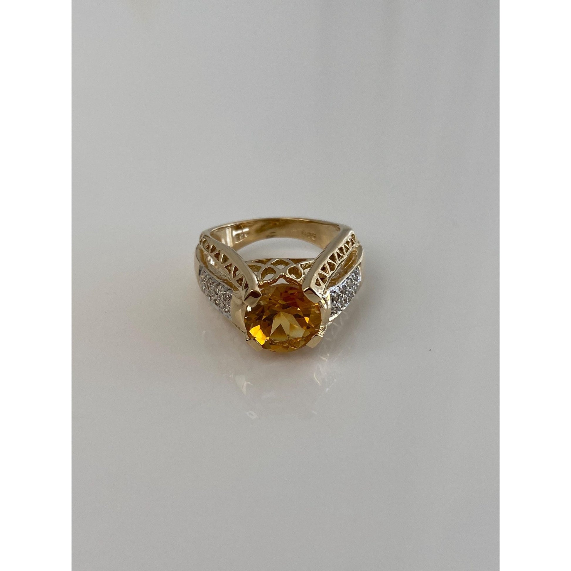 Vintage Solid 14k Yellow Gold Diamond Citrine Ring - Size 6.75