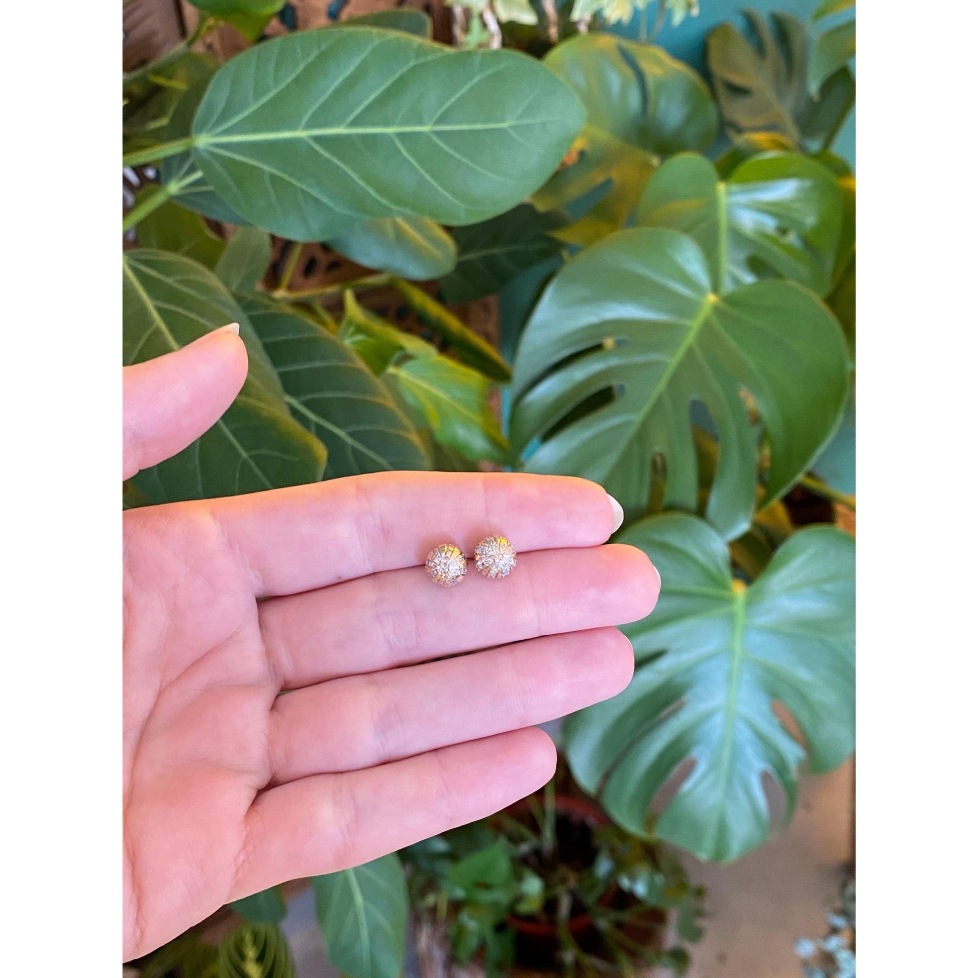 Vintage Solid 14k Yellow Gold Diamond Cluster Ball Stud Earrings