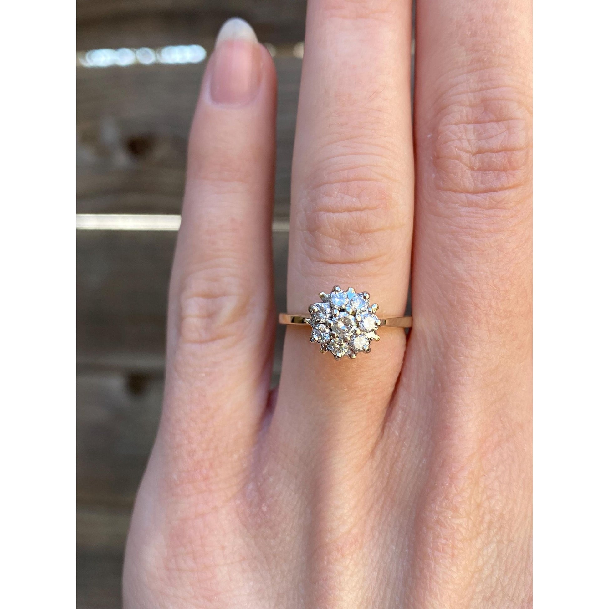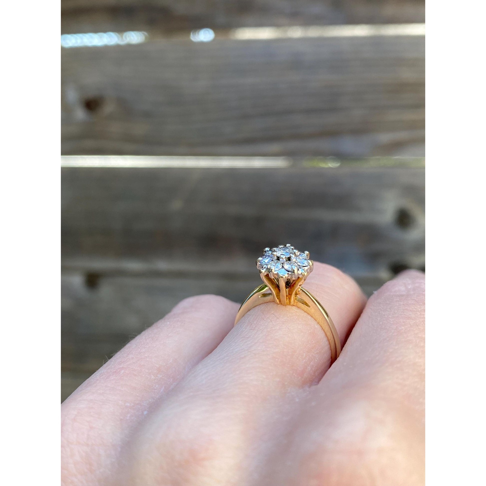 Vintage Solid 14k Yellow Gold Diamond Cluster Ring - Size 4.75