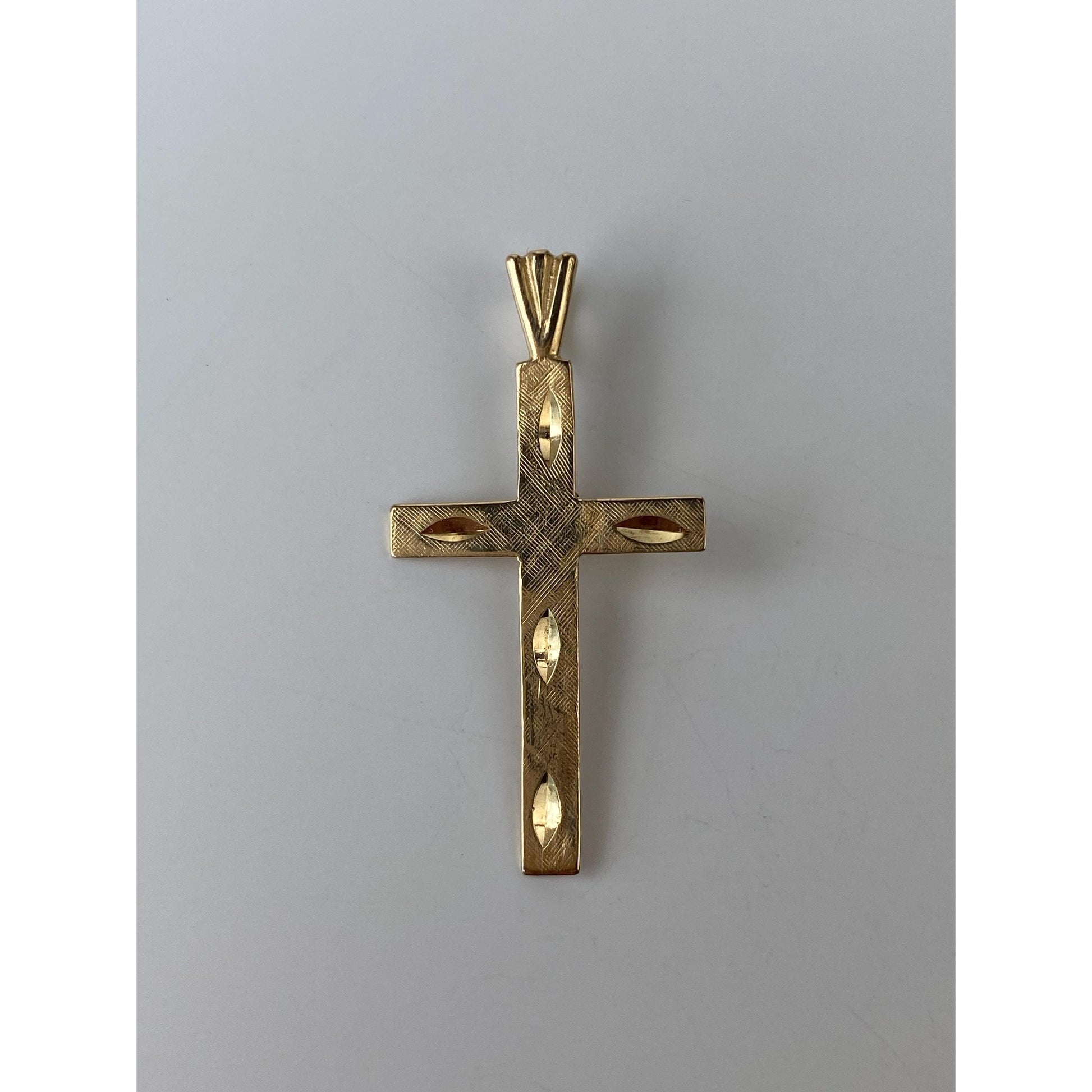 Vintage Solid 14k Yellow Gold Diamond Cut Cross Charm
