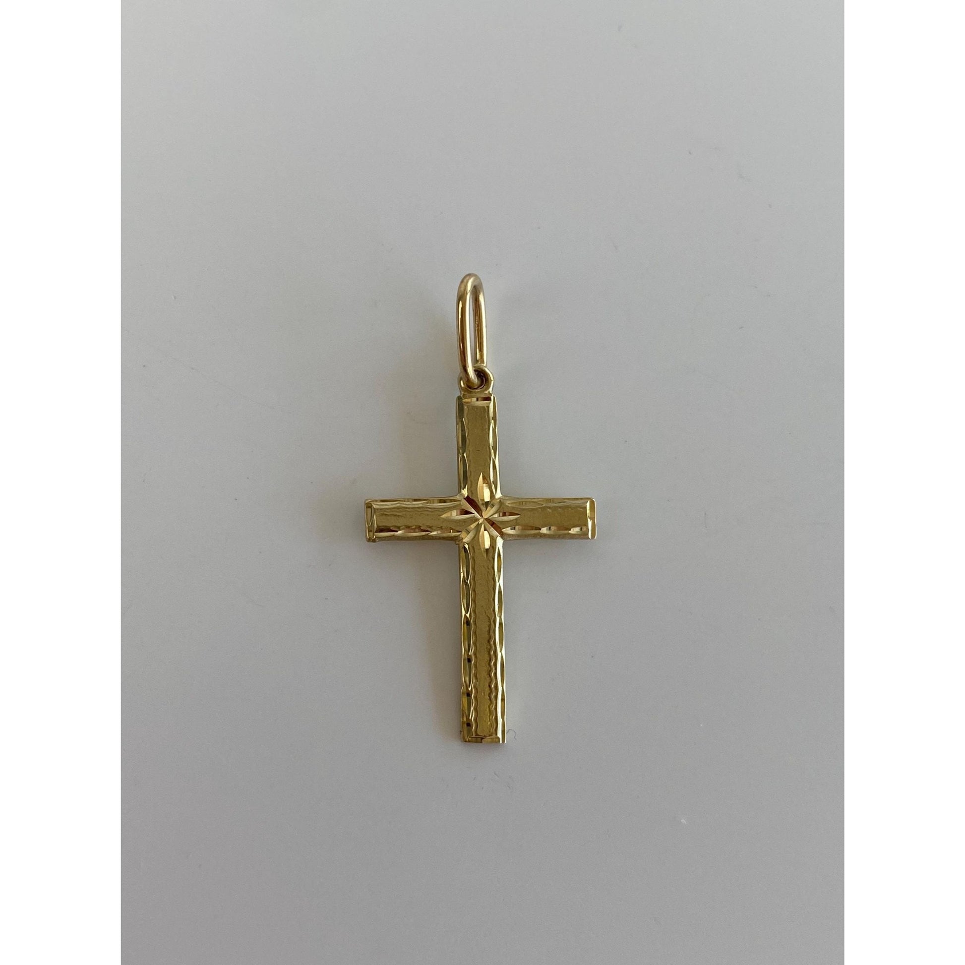 Vintage Solid 14k Yellow Gold Diamond Cut Cross Charm