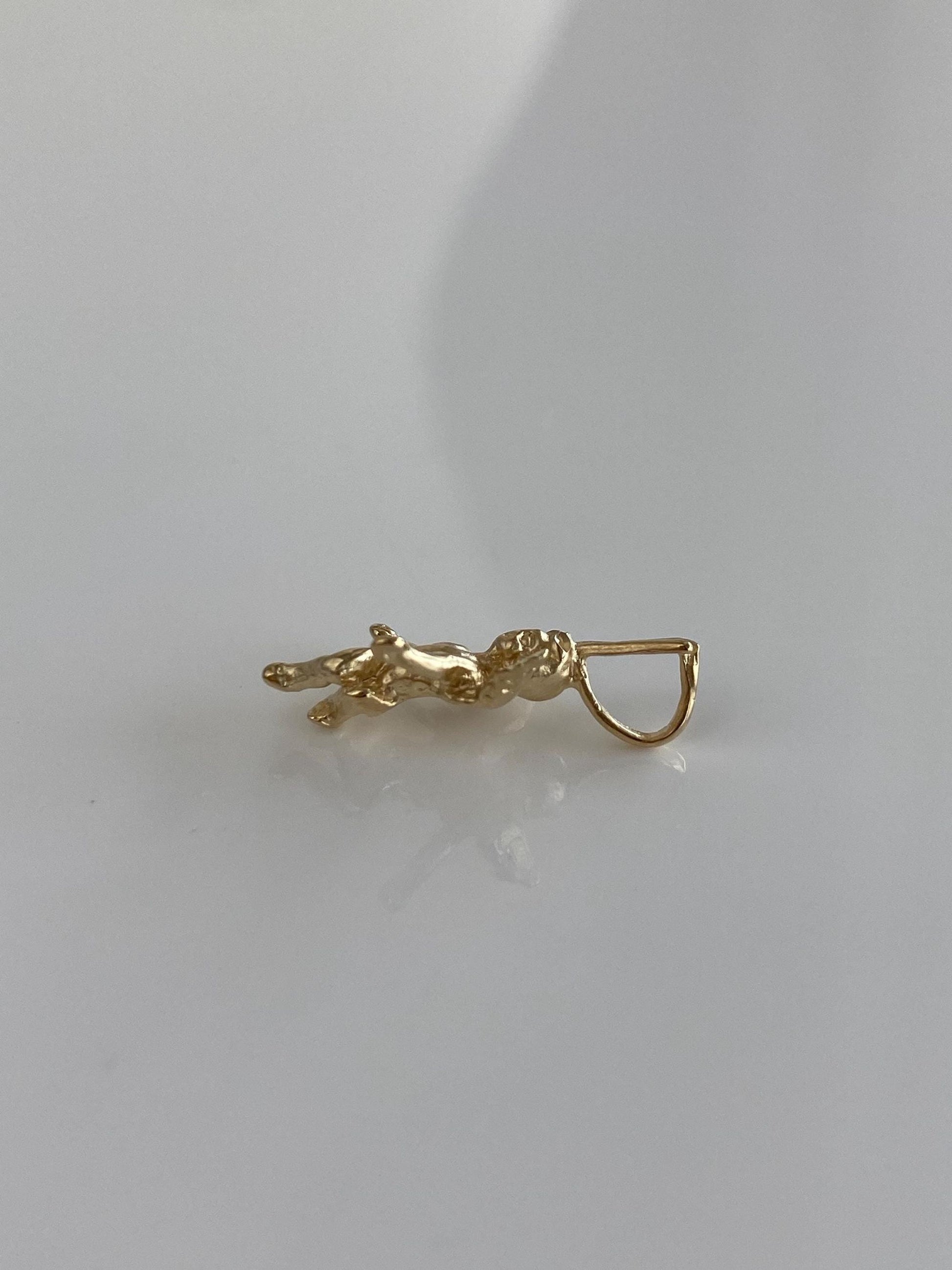 Vintage Solid 14k Yellow Gold Diamond Cut Cupid Angel Charm