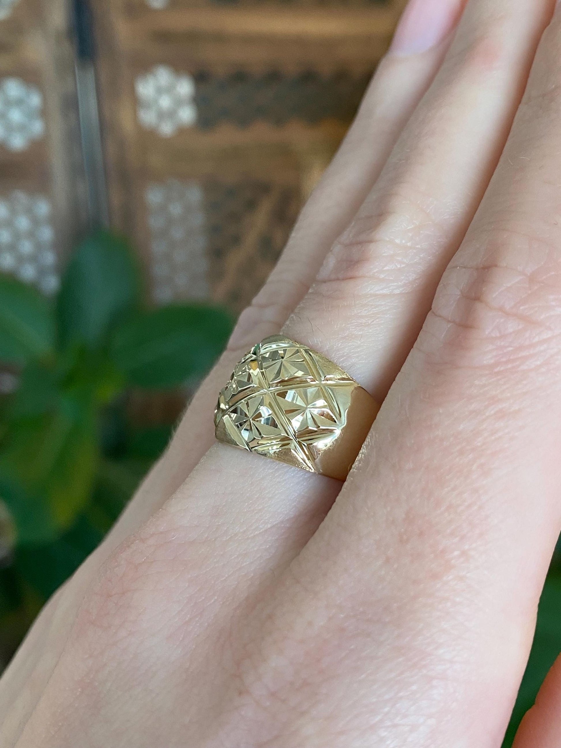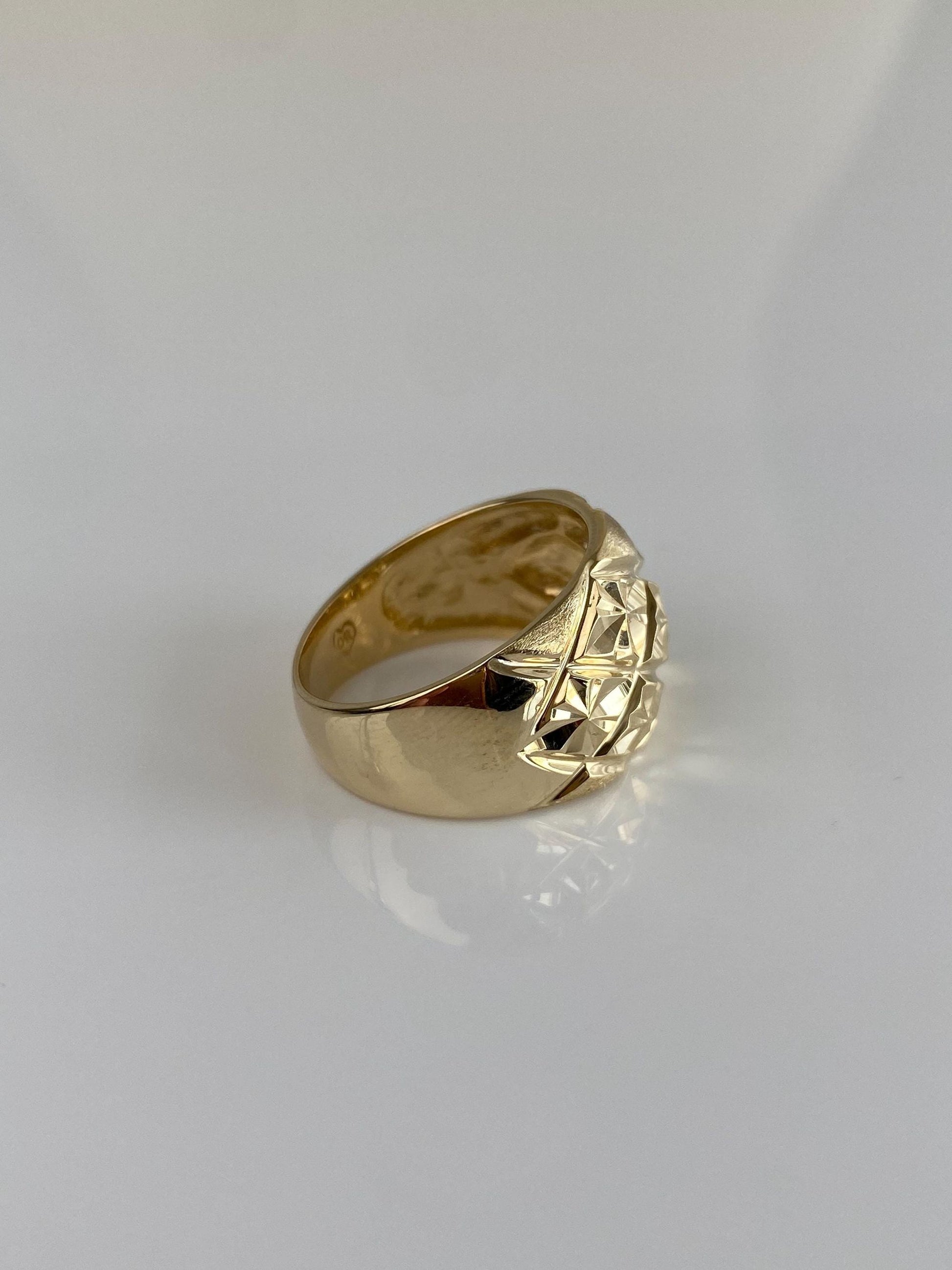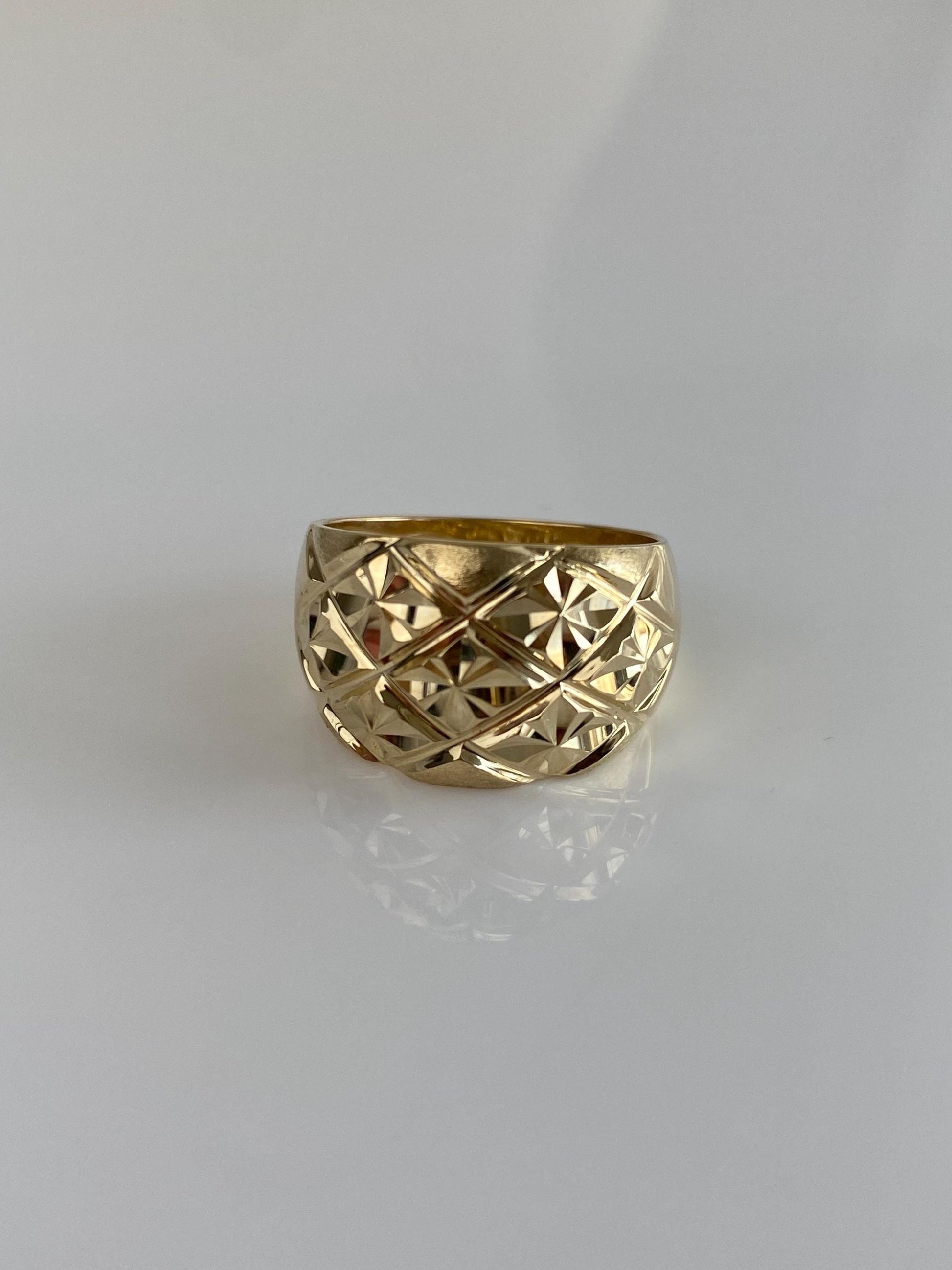 Vintage Solid 14k Yellow Gold Diamond Cut Domed Ring - Size 7