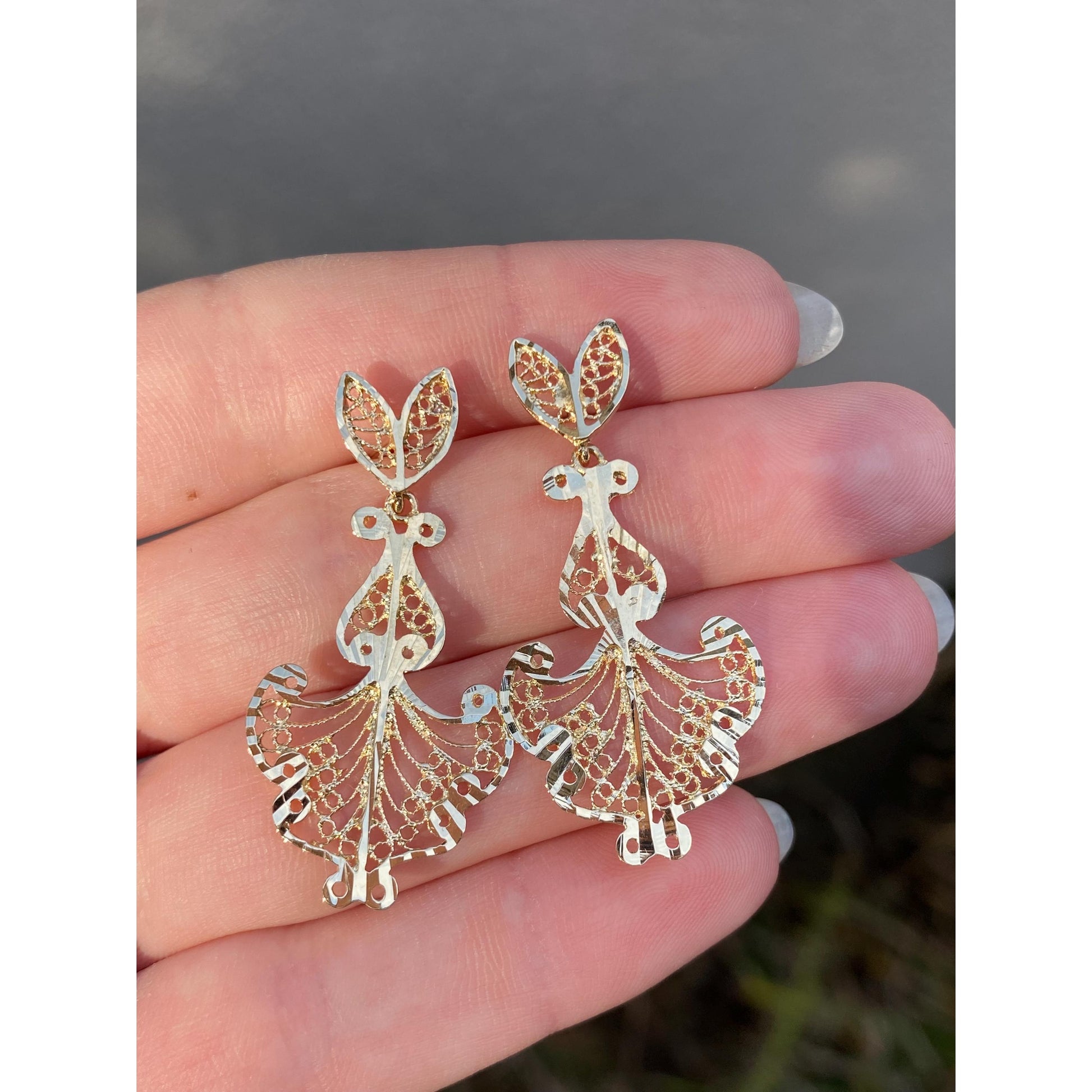 Vintage Solid 14k Yellow Gold Diamond Cut Filigree Dangle Stud Earrings