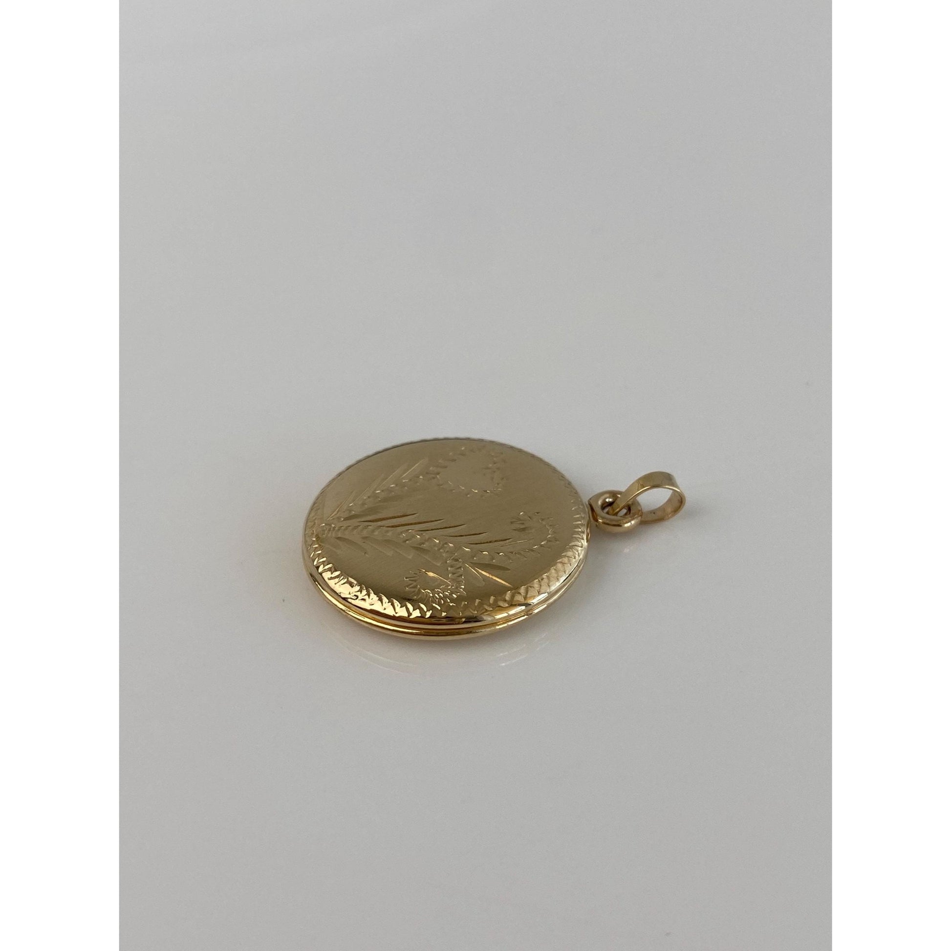 Vintage Solid 14k Yellow Gold Diamond Cut Floral Heart Design Locket Charm