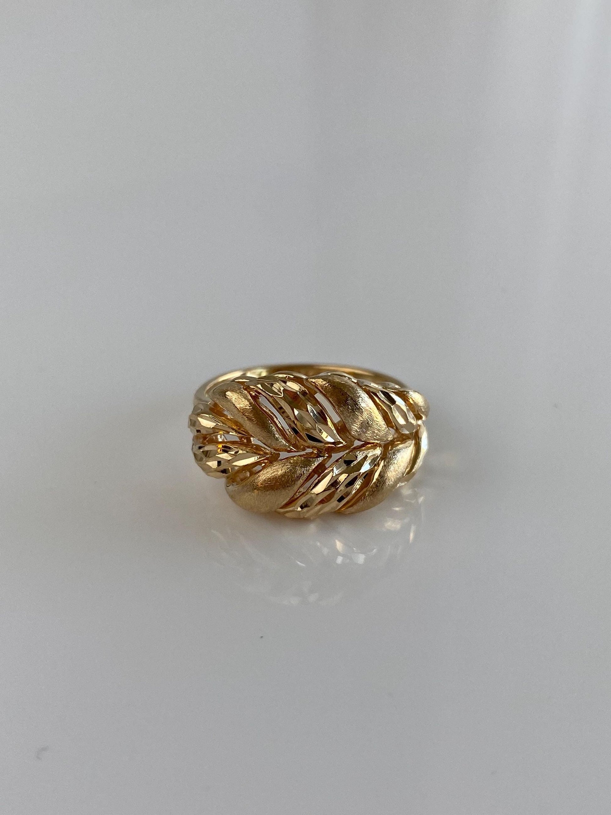 Vintage Solid 14k Yellow Gold Diamond Cut Foliage Wheat Ring Band - Size 4.75