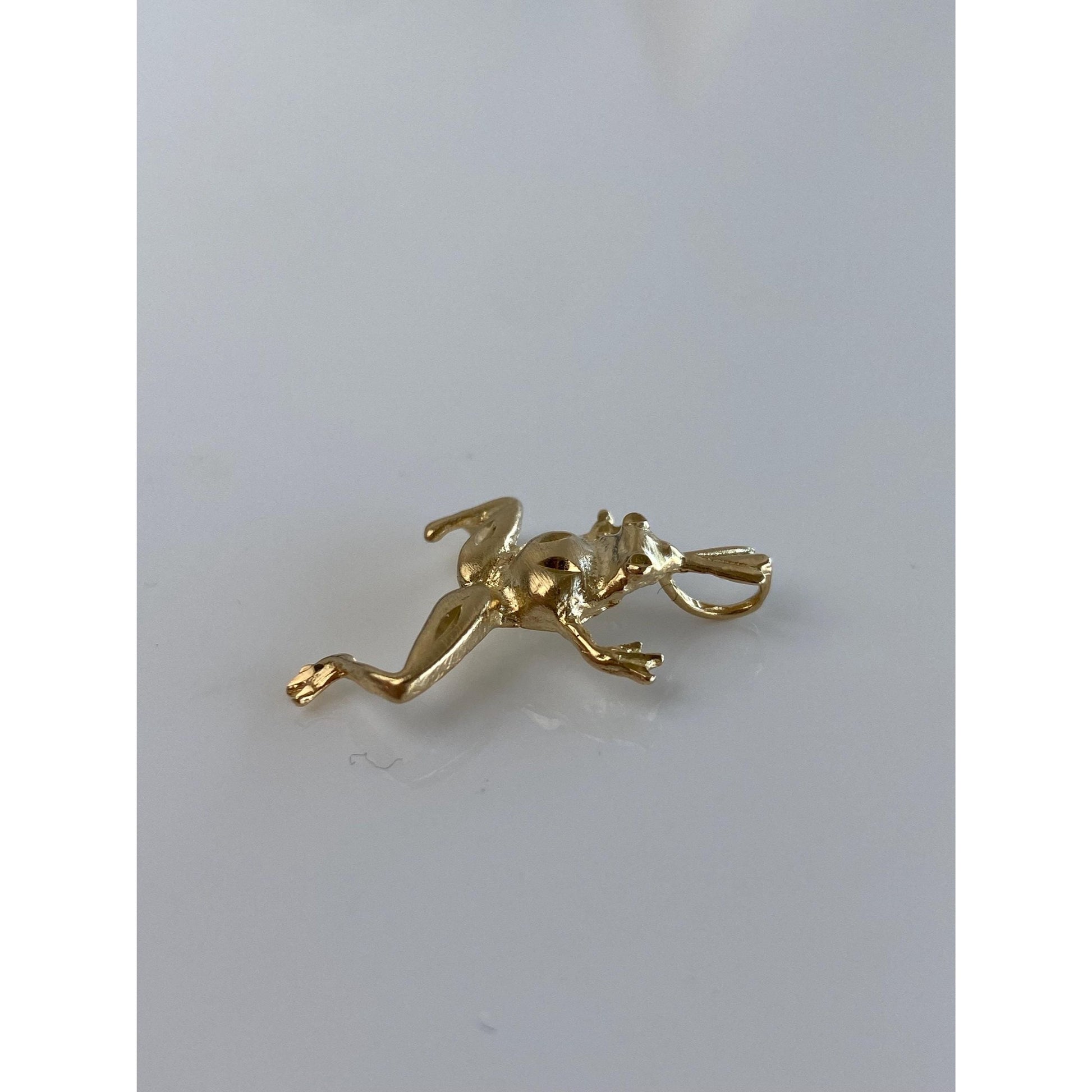 Vintage Solid 14k Yellow Gold Diamond Cut Frog Charm