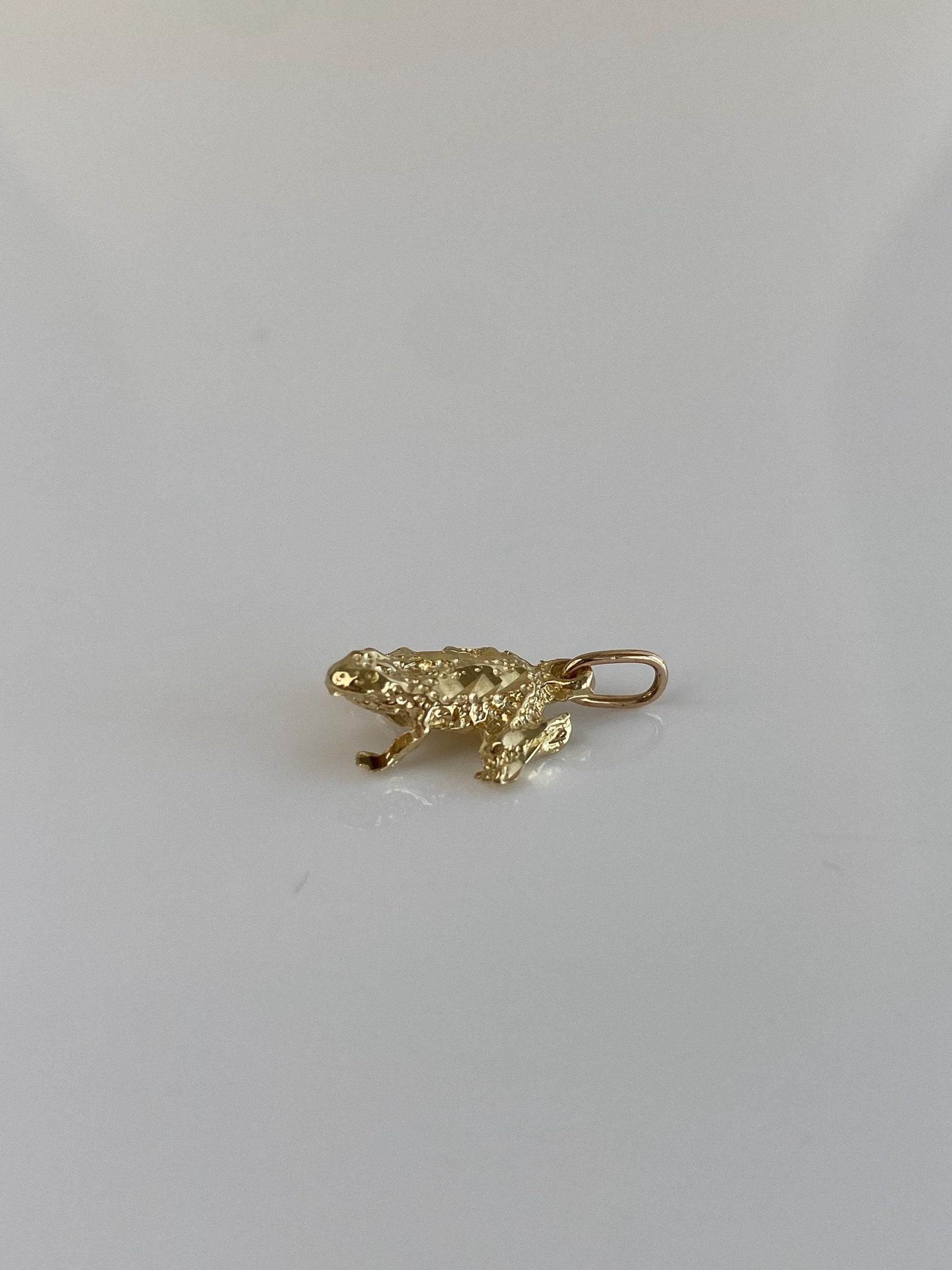 Vintage Solid 14k Yellow Gold Diamond Cut Frog Charm