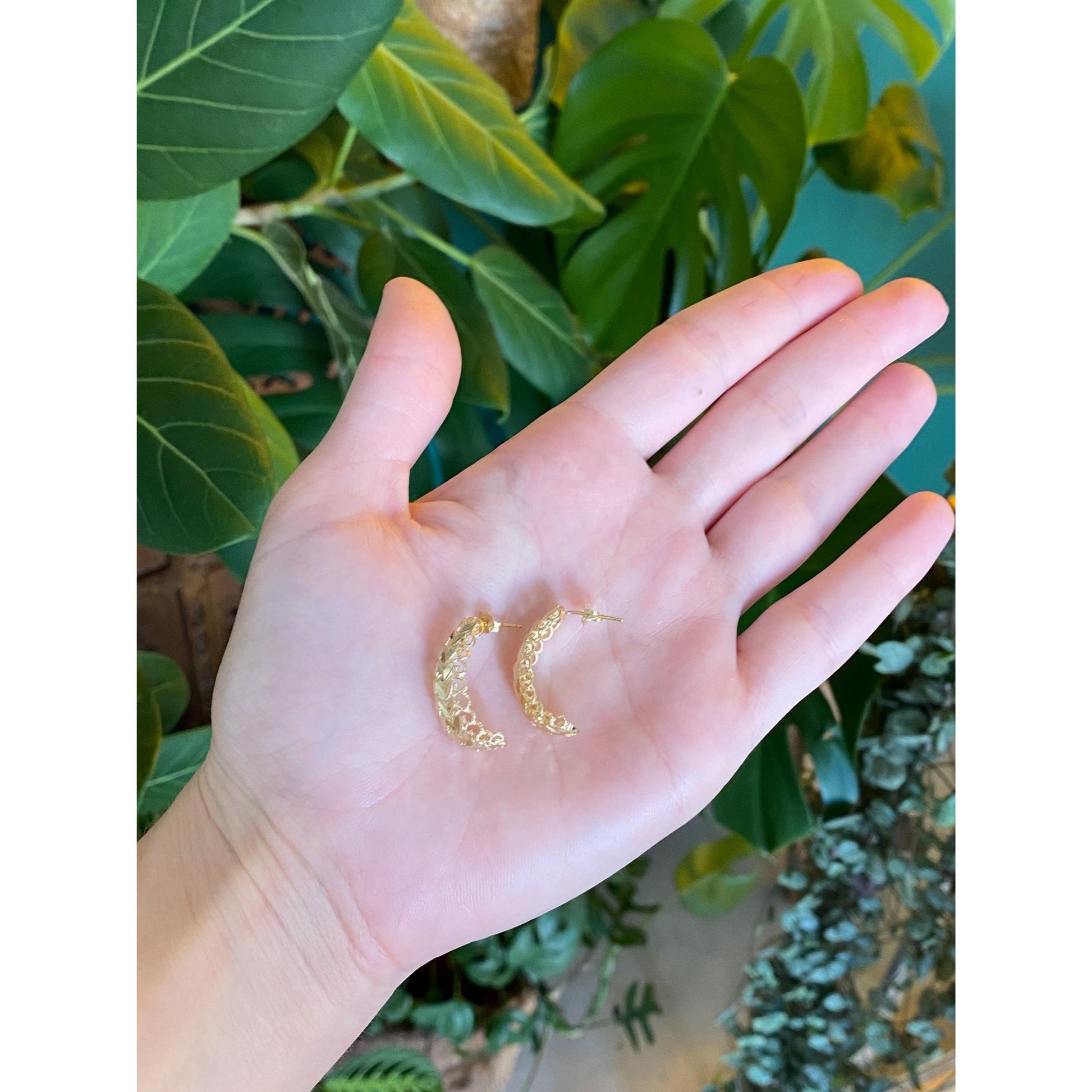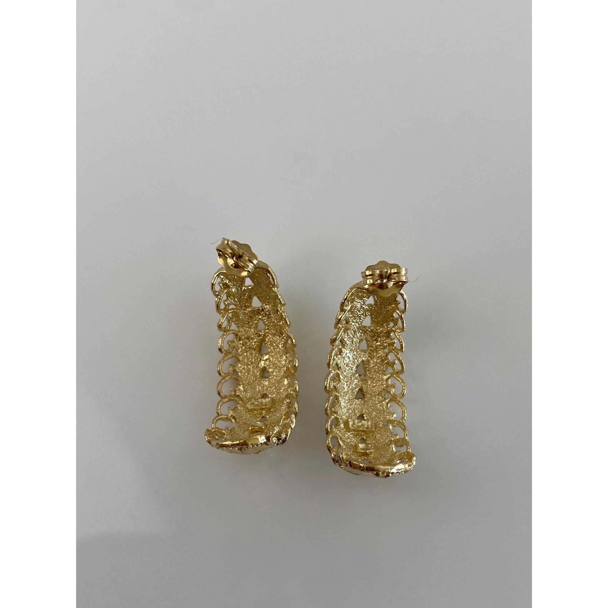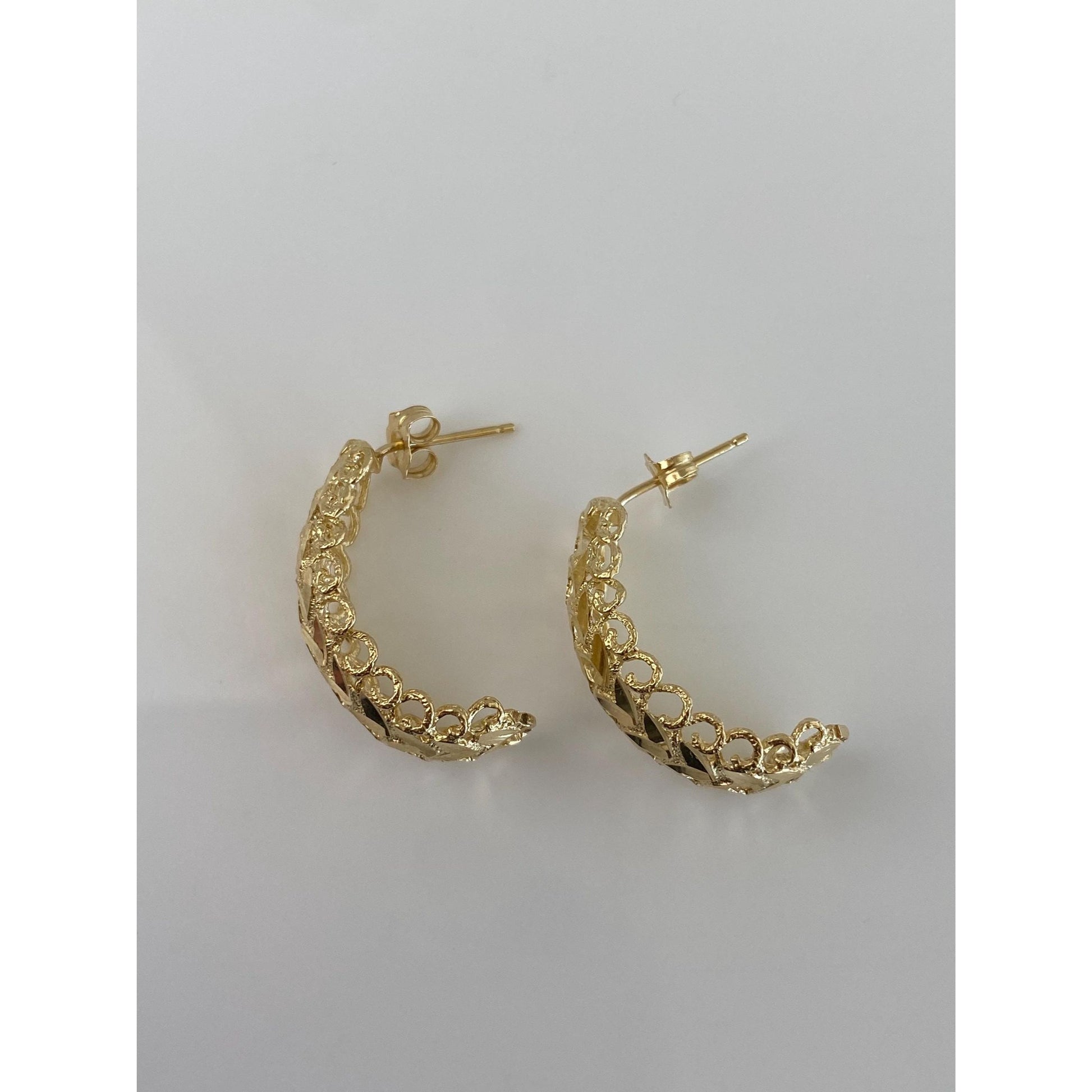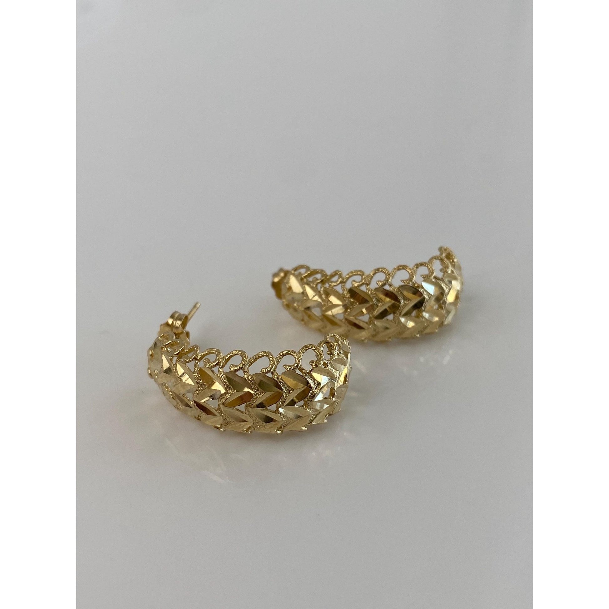Vintage Solid 14k Yellow Gold Diamond Cut Hearts Drop Earrings