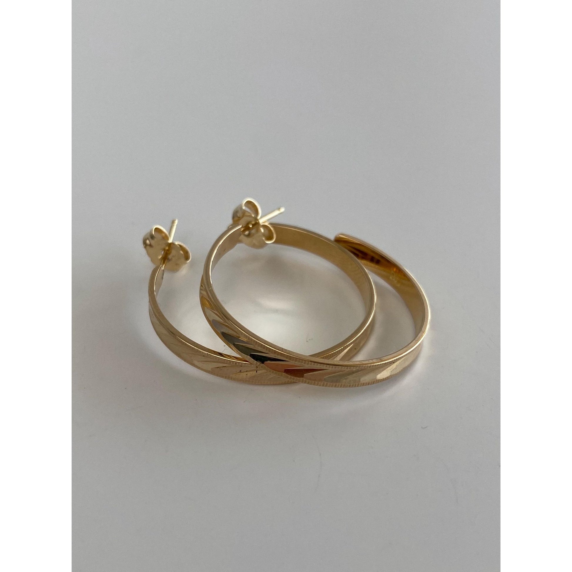 Vintage Solid 14k Yellow Gold Diamond Cut Hoop Earrings