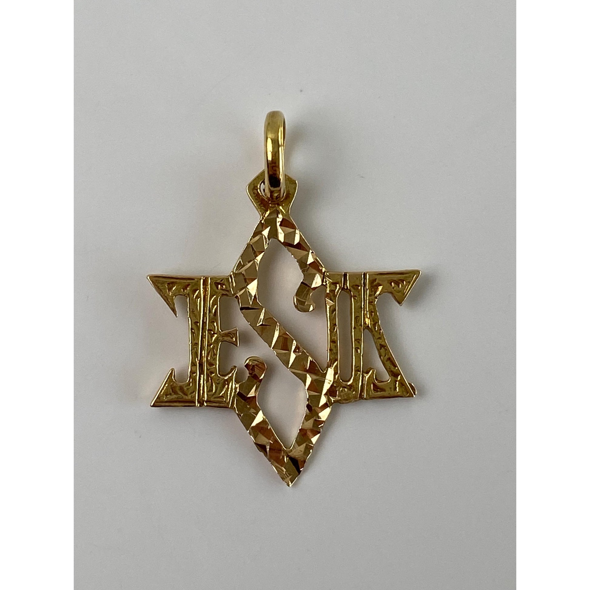 Vintage Solid 14k Yellow Gold Diamond Cut Jesus Charm