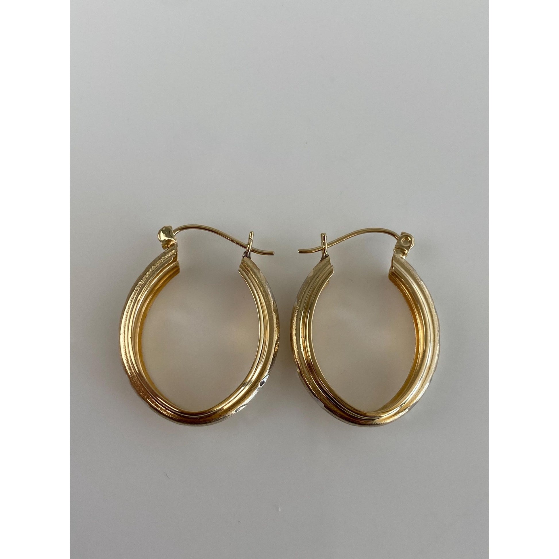 Vintage Solid 14k Yellow Gold Diamond Cut Lined Hoop Earrings