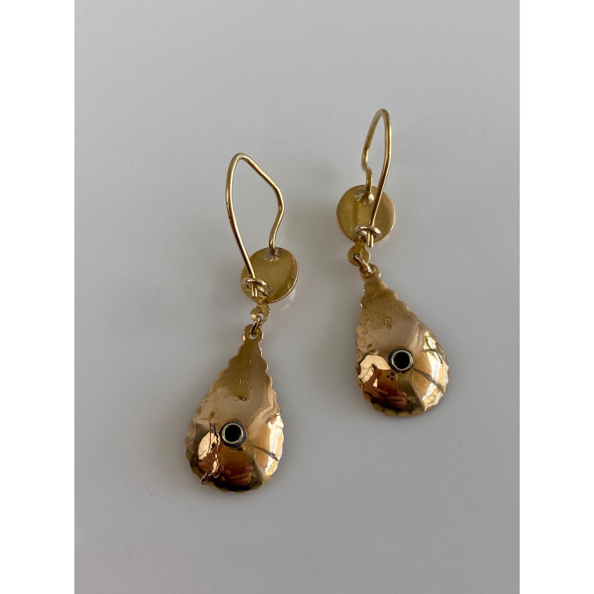 Vintage Solid 14k Yellow Gold Diamond Cut Open Work Dangle Earrings