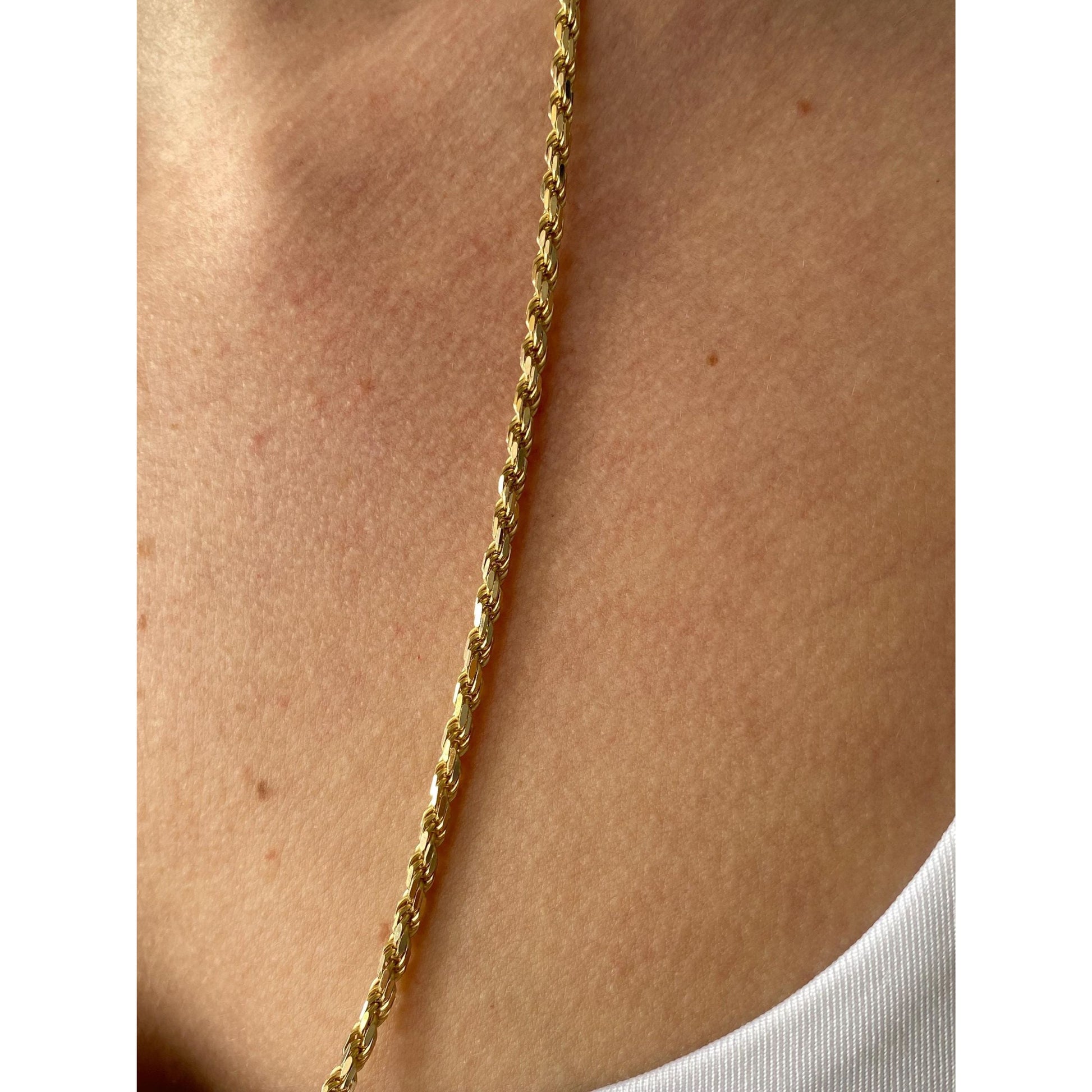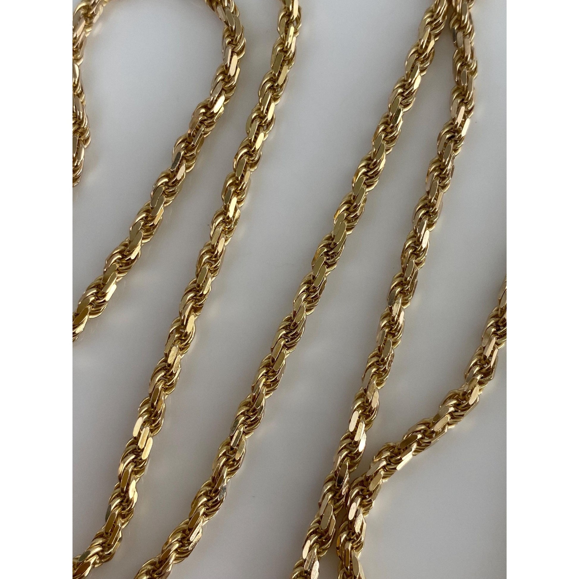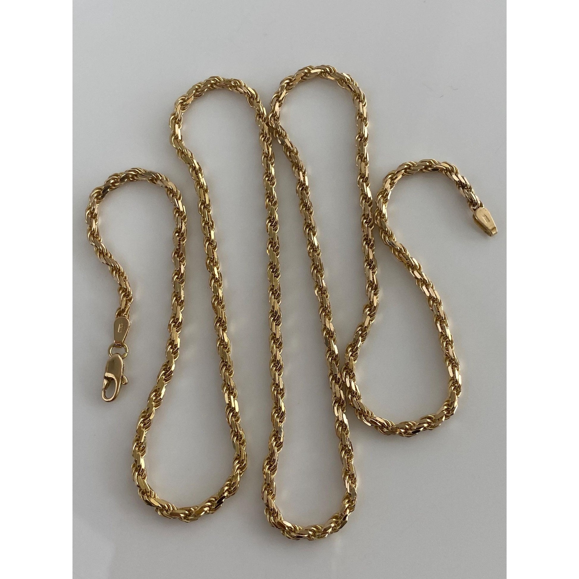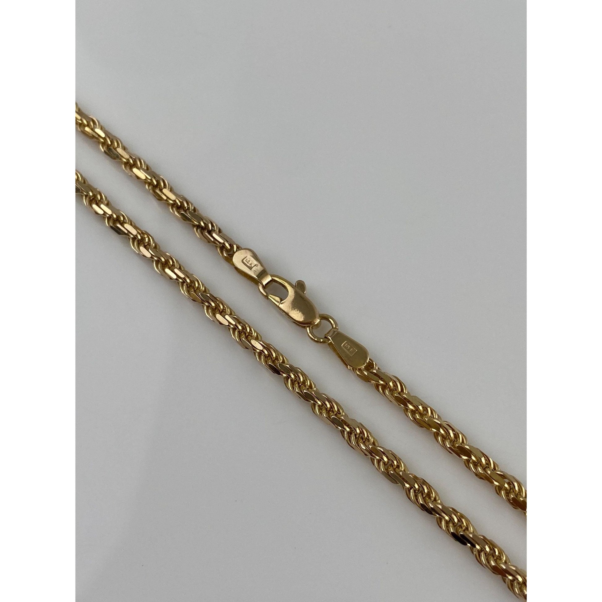 Vintage Solid 14k Yellow Gold Diamond Cut Rope Chain Necklace - 24 inches