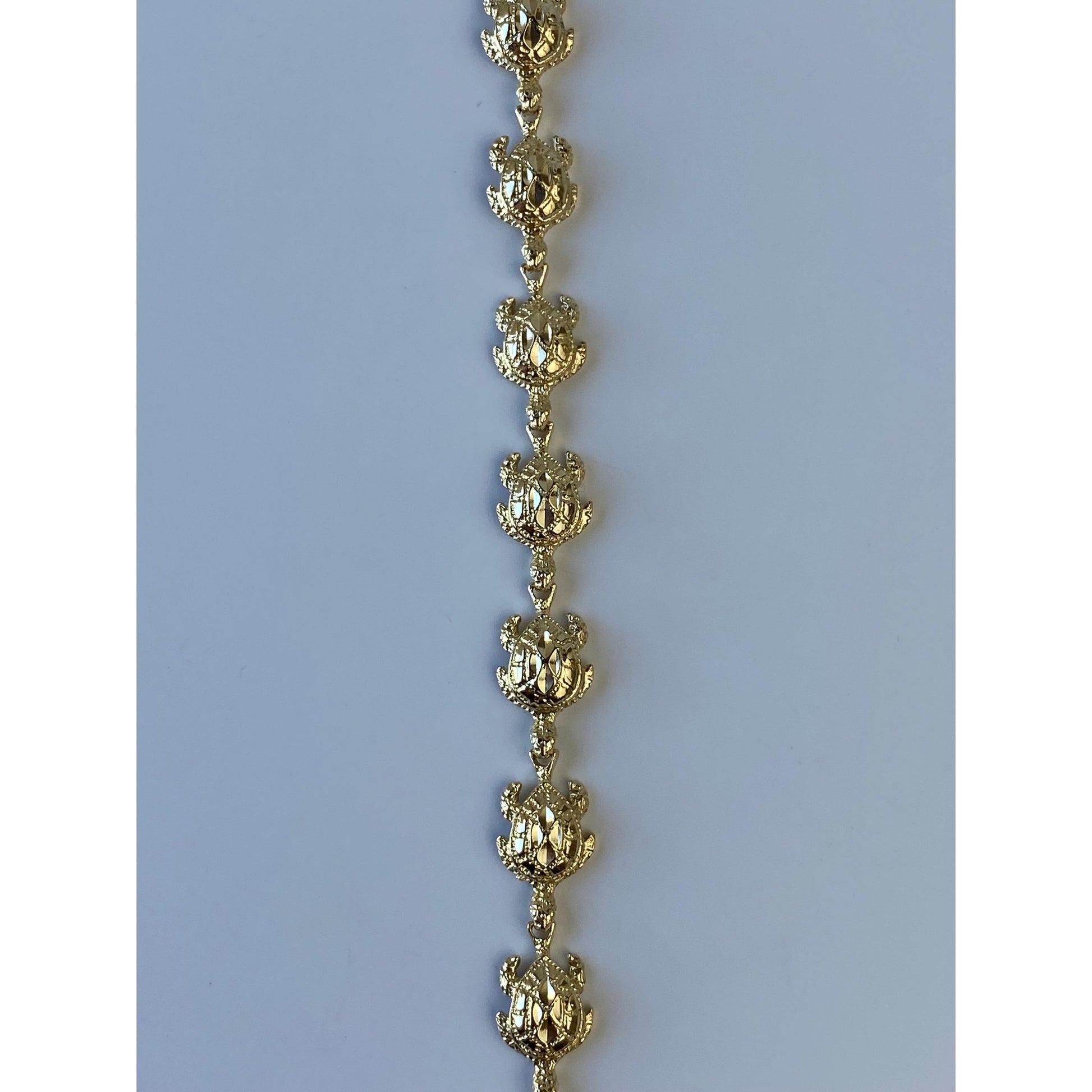 Vintage Solid 14k Yellow Gold Diamond Cut Sea Turtle Bracelet - 7.25 inches
