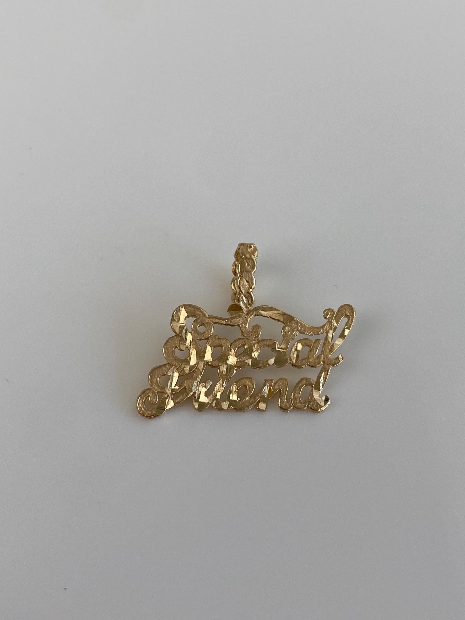 Vintage Solid 14k Yellow Gold Diamond Cut Special Friend Charm
