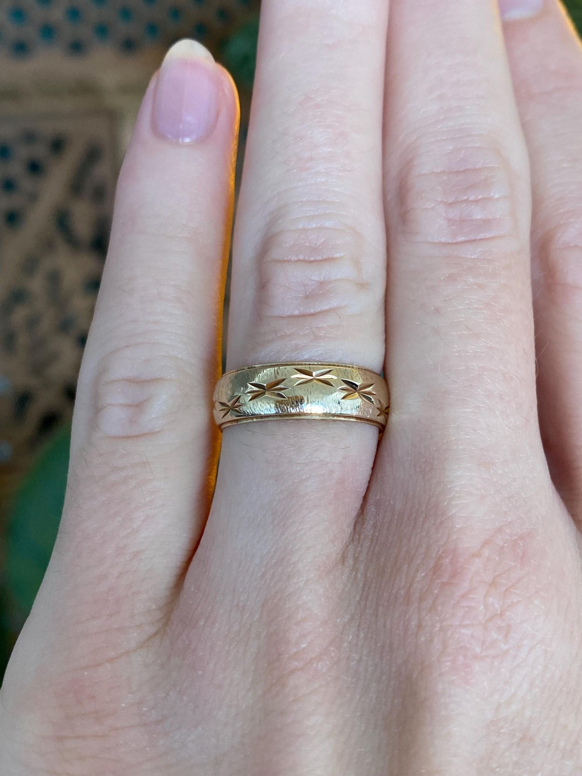 Vintage Solid 14k Yellow Gold Diamond Cut Stars Ring Band - Size 5.75