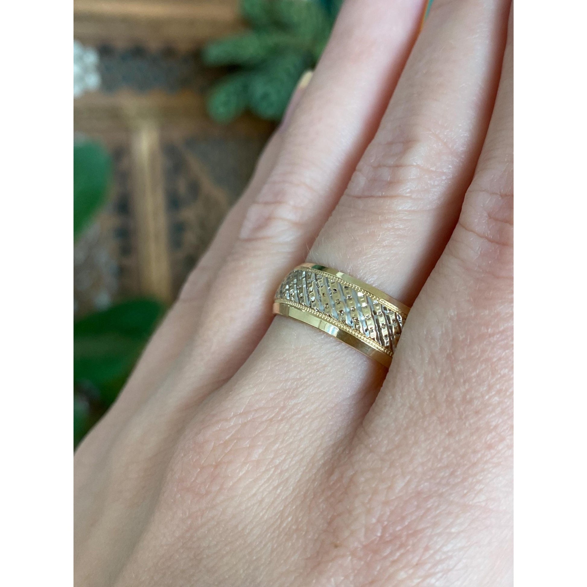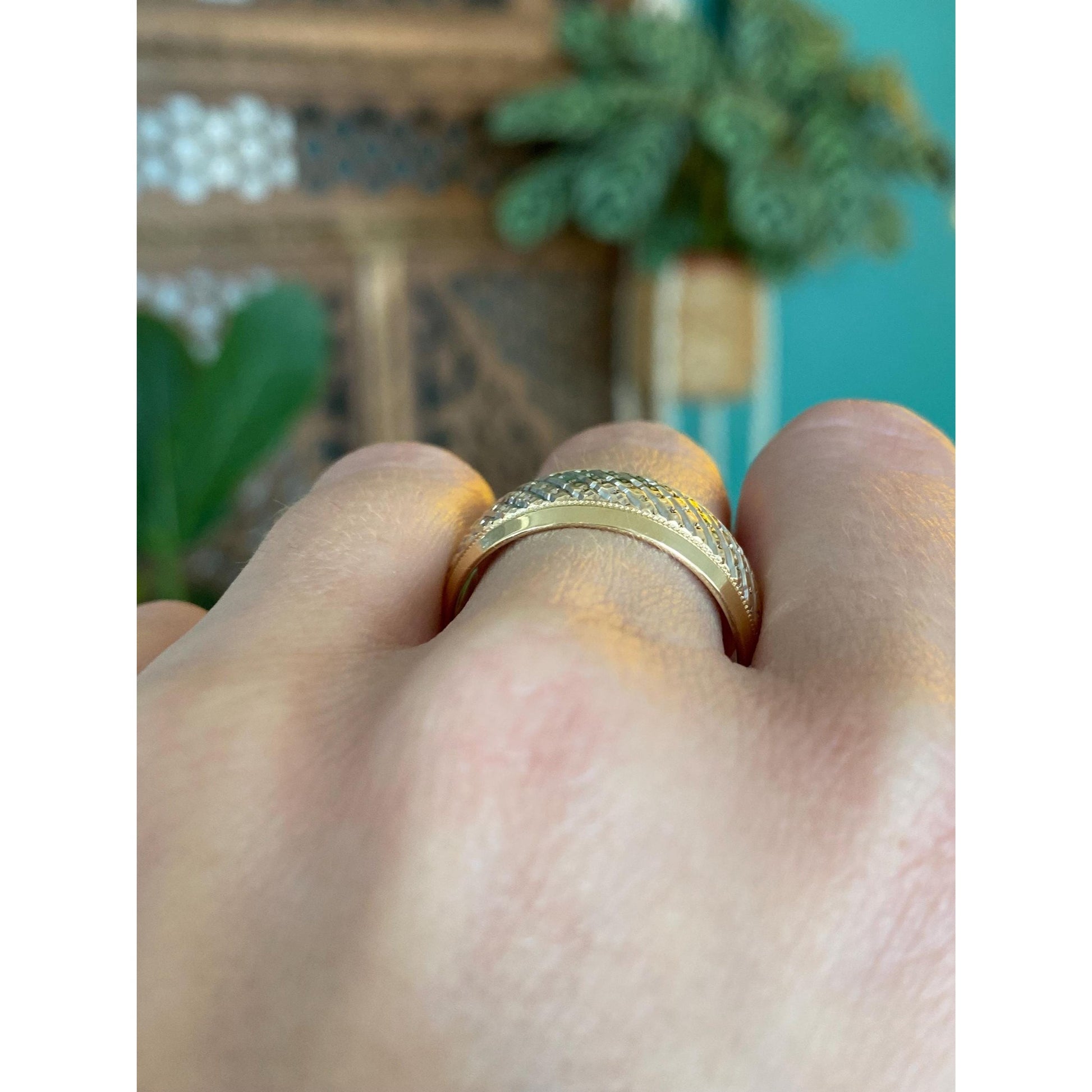 Vintage Solid 14k Yellow Gold Diamond Cut Textured Ring Band - Size 10.75