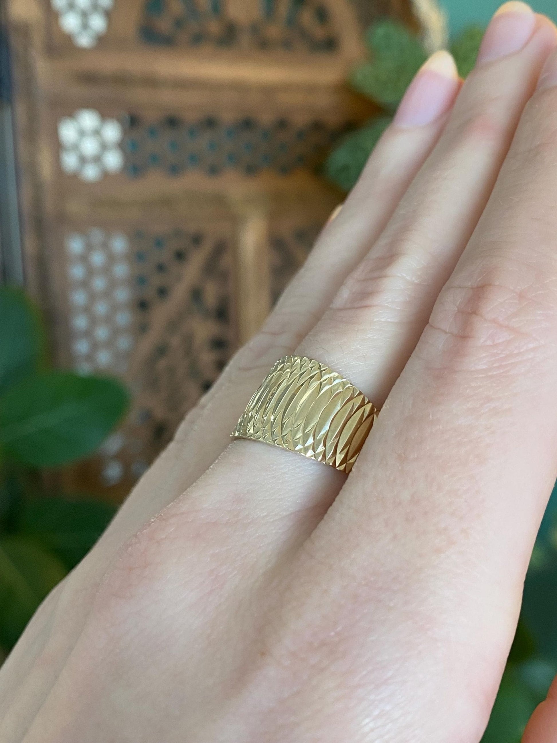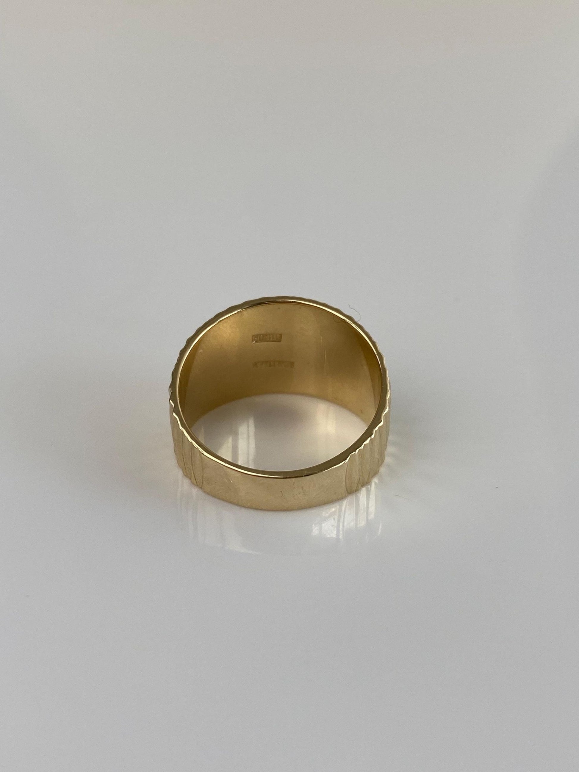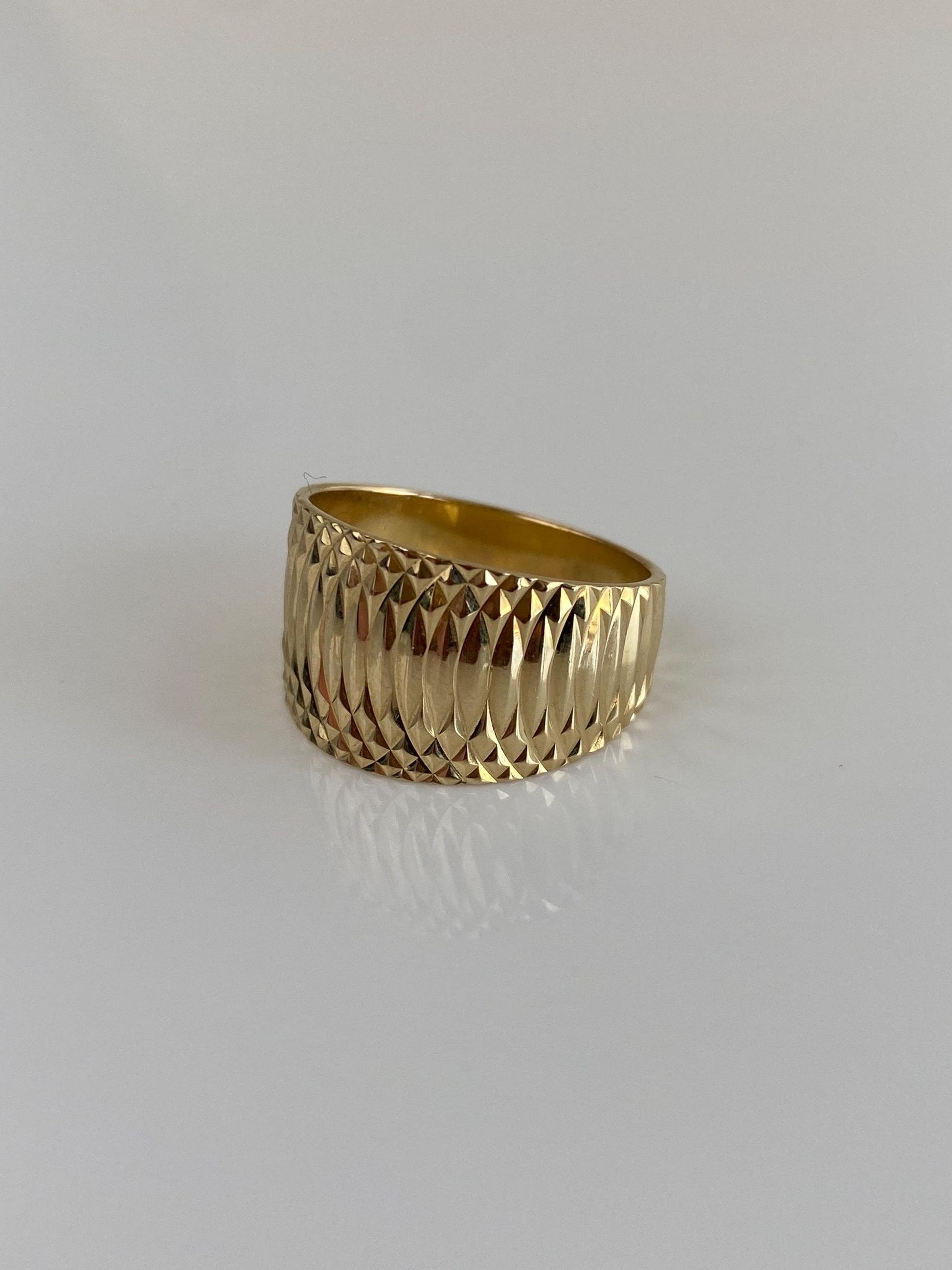 Vintage Solid 14k Yellow Gold Diamond Cut Wide Ring Band - Size 6.75