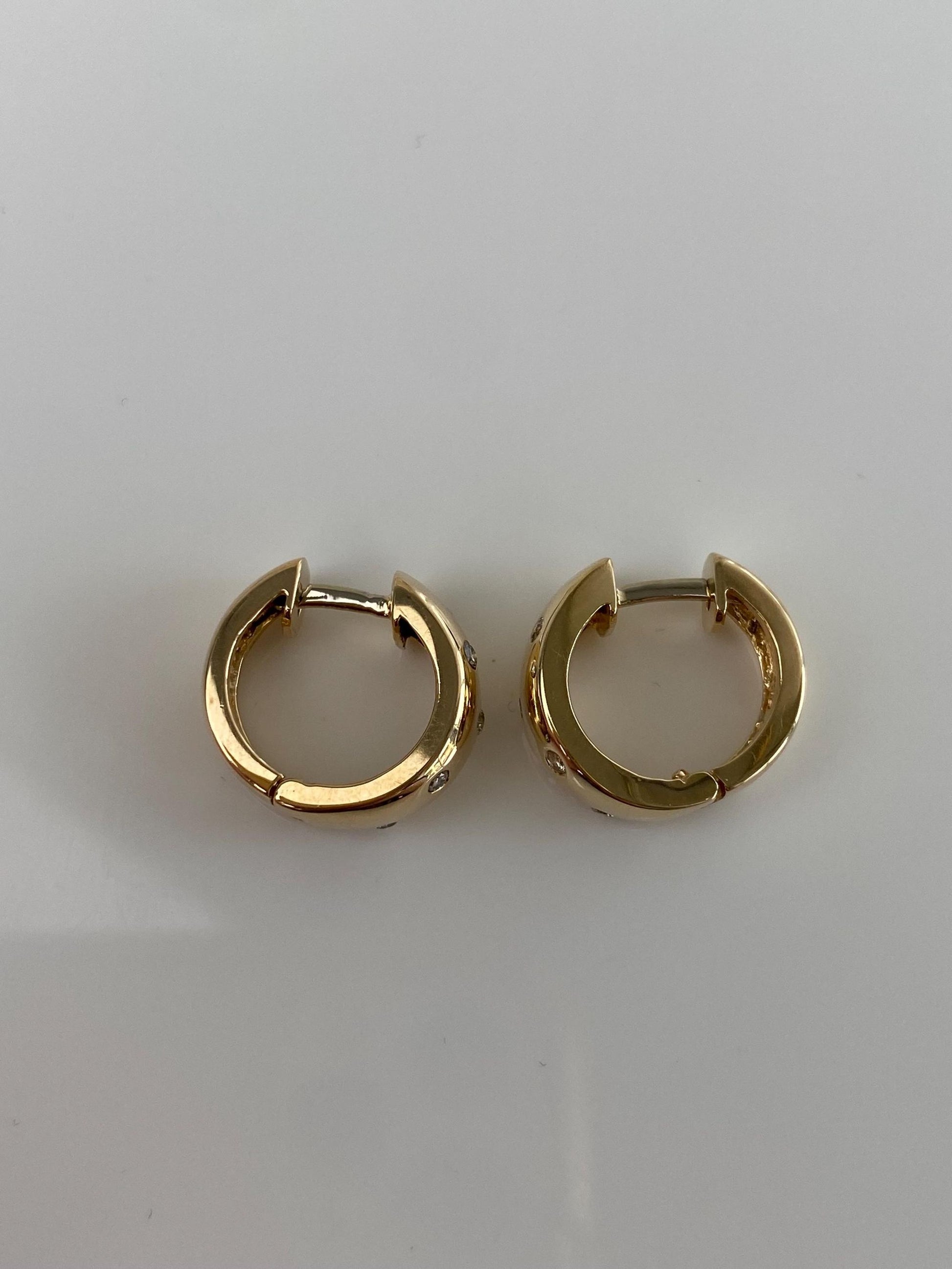 Vintage Solid 14k Yellow Gold Diamond Dotted Chunky Hoop Earrings