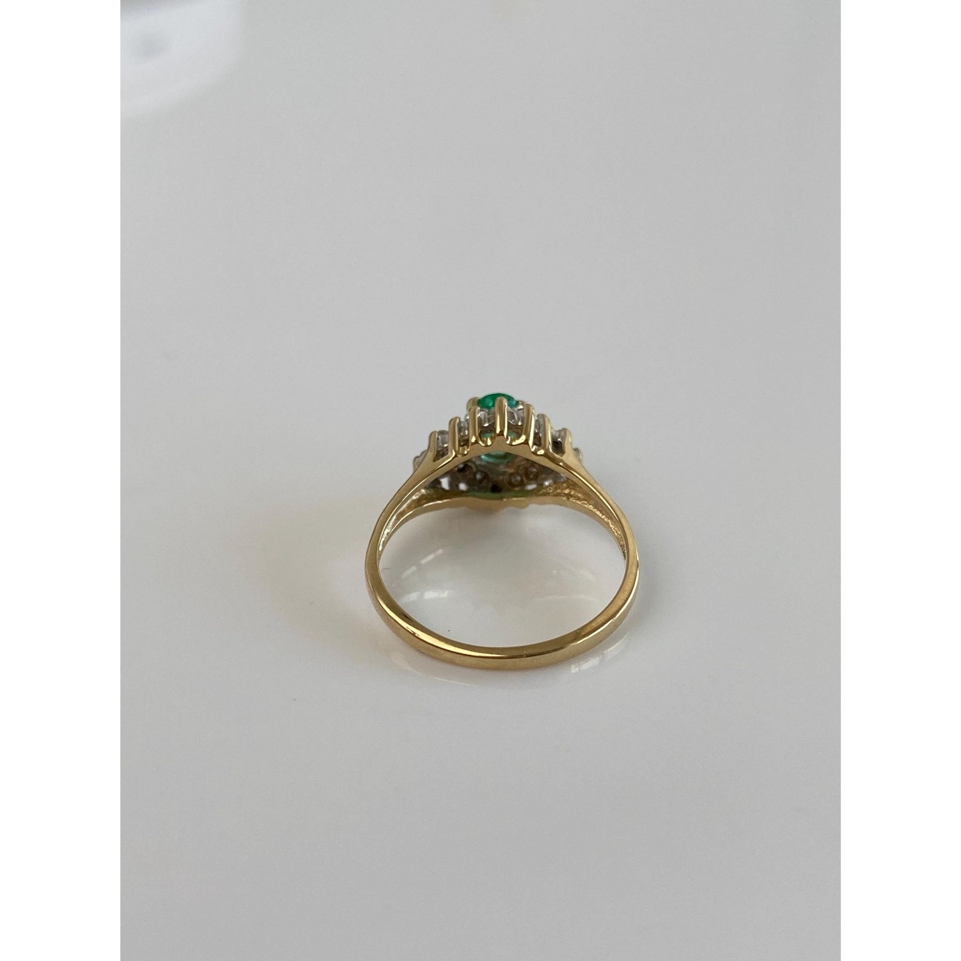 Vintage Solid 14k Yellow Gold Diamond Emerald Ring - Size 5.75