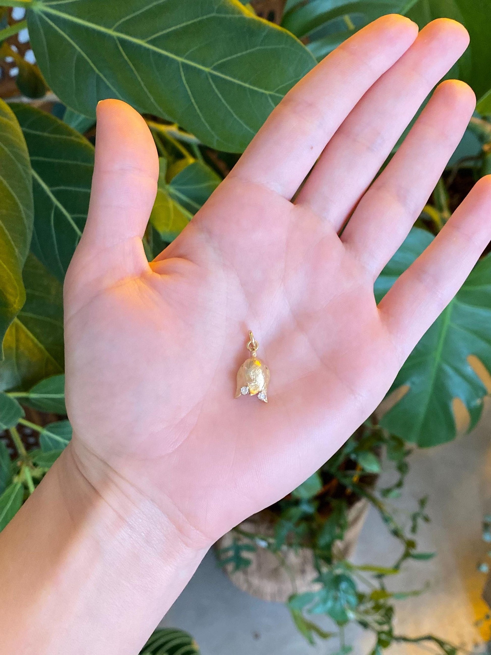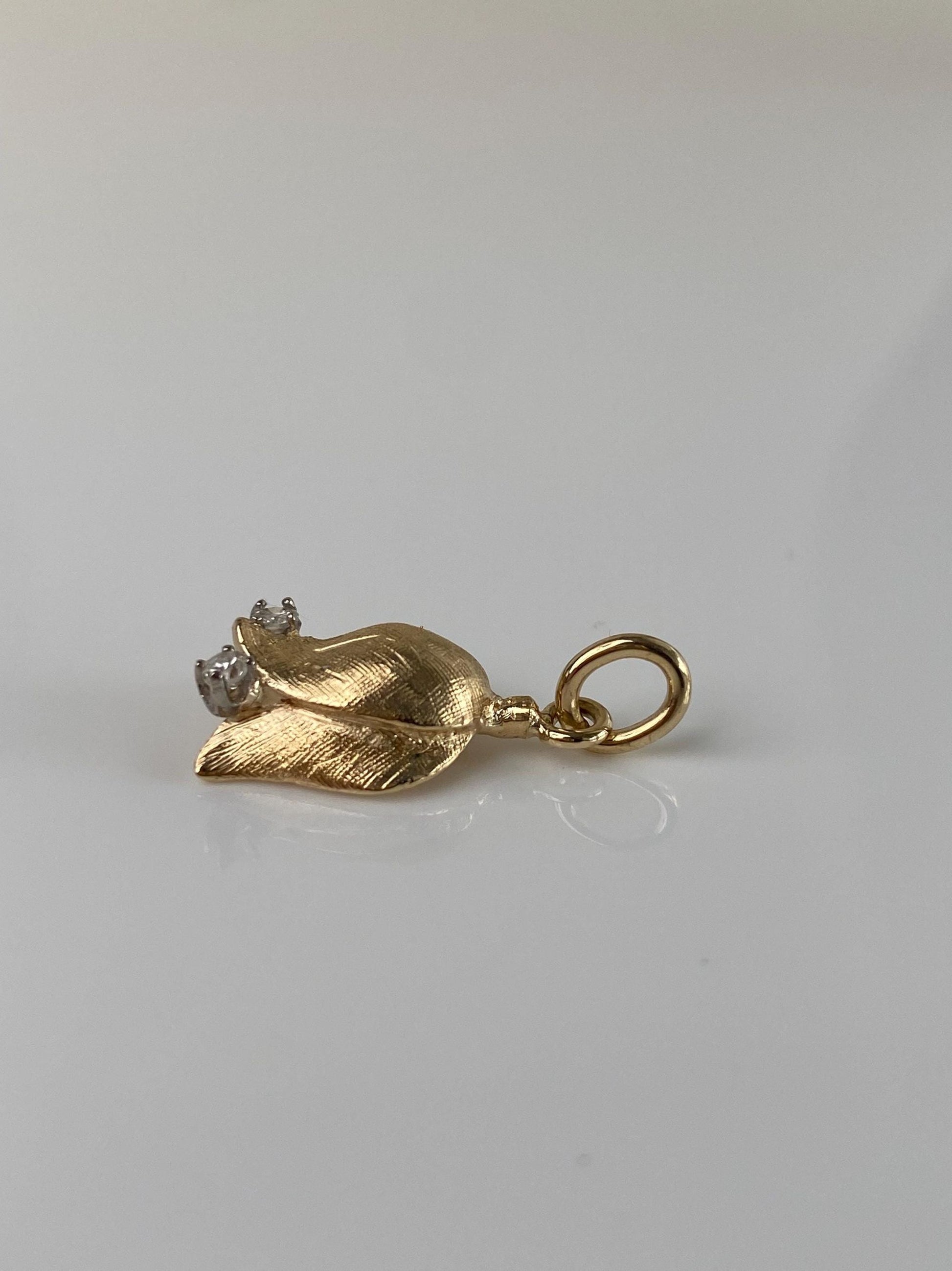 Vintage Solid 14k Yellow Gold Diamond Flower Charm
