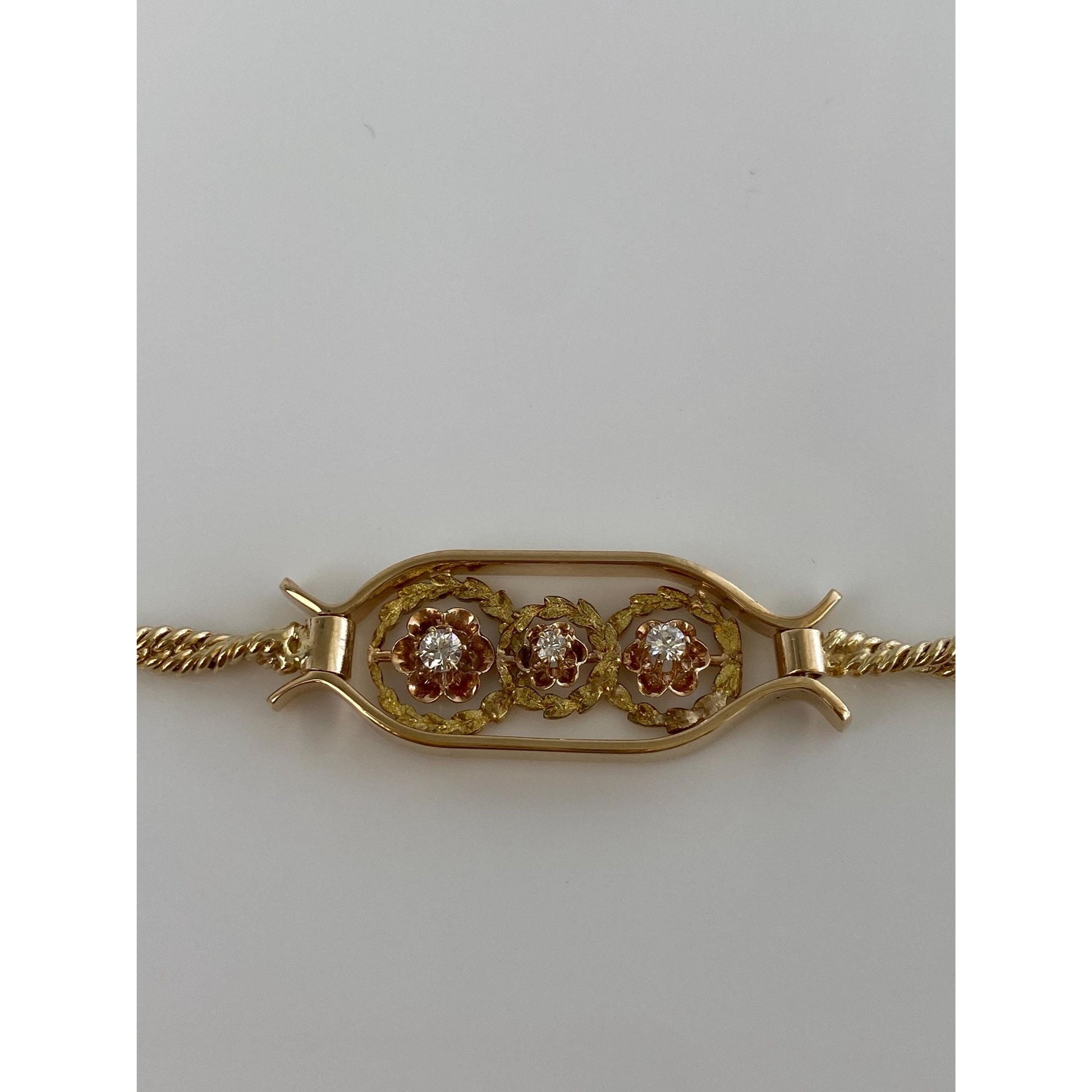 Vintage Solid 14k Yellow Gold Diamond Flowers Twist Rope Chain ID Style Bracelet - 6.75 inches