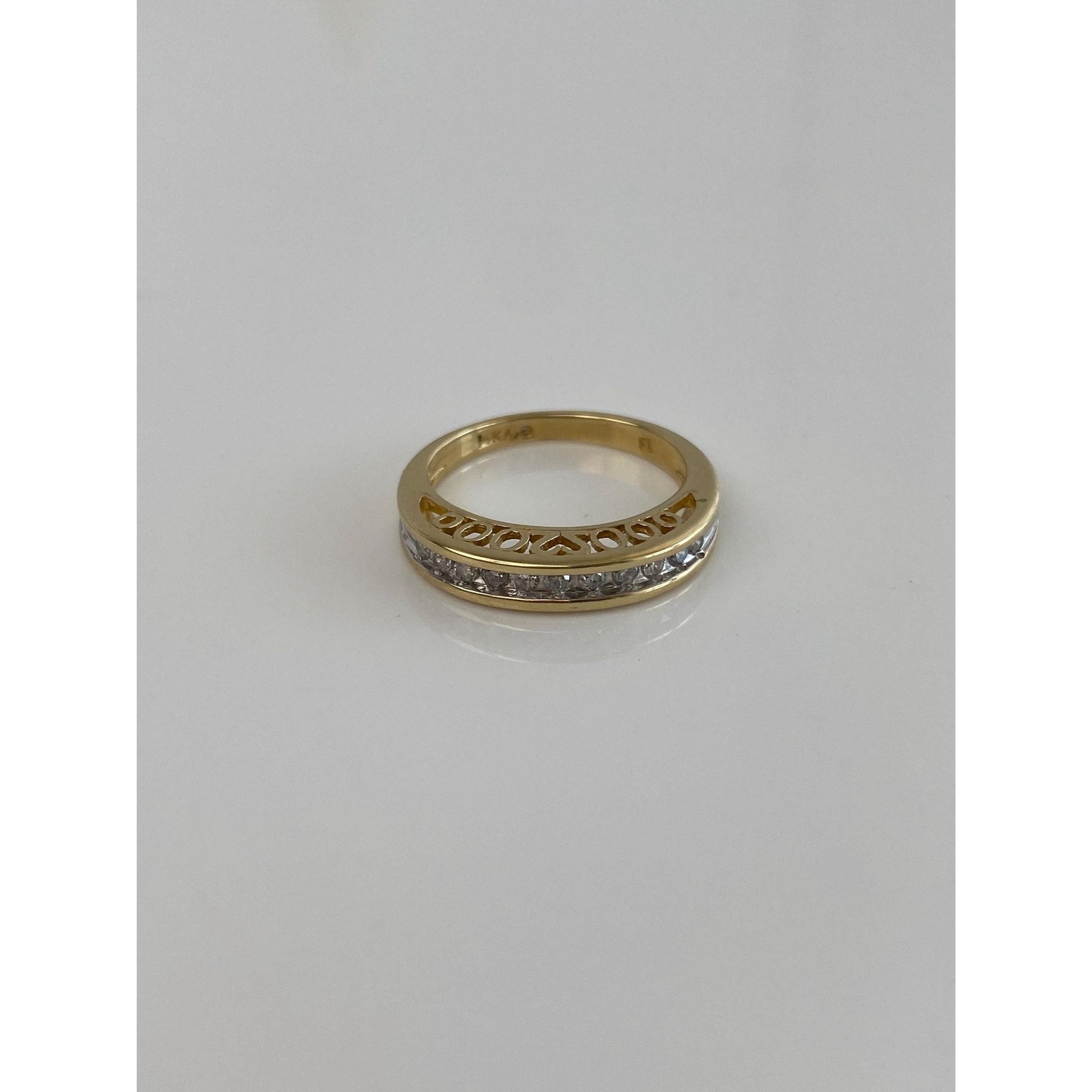 Vintage Solid 14k Yellow Gold Diamond Half Eternity Ring Band - Size 6.5